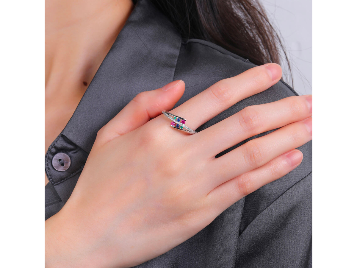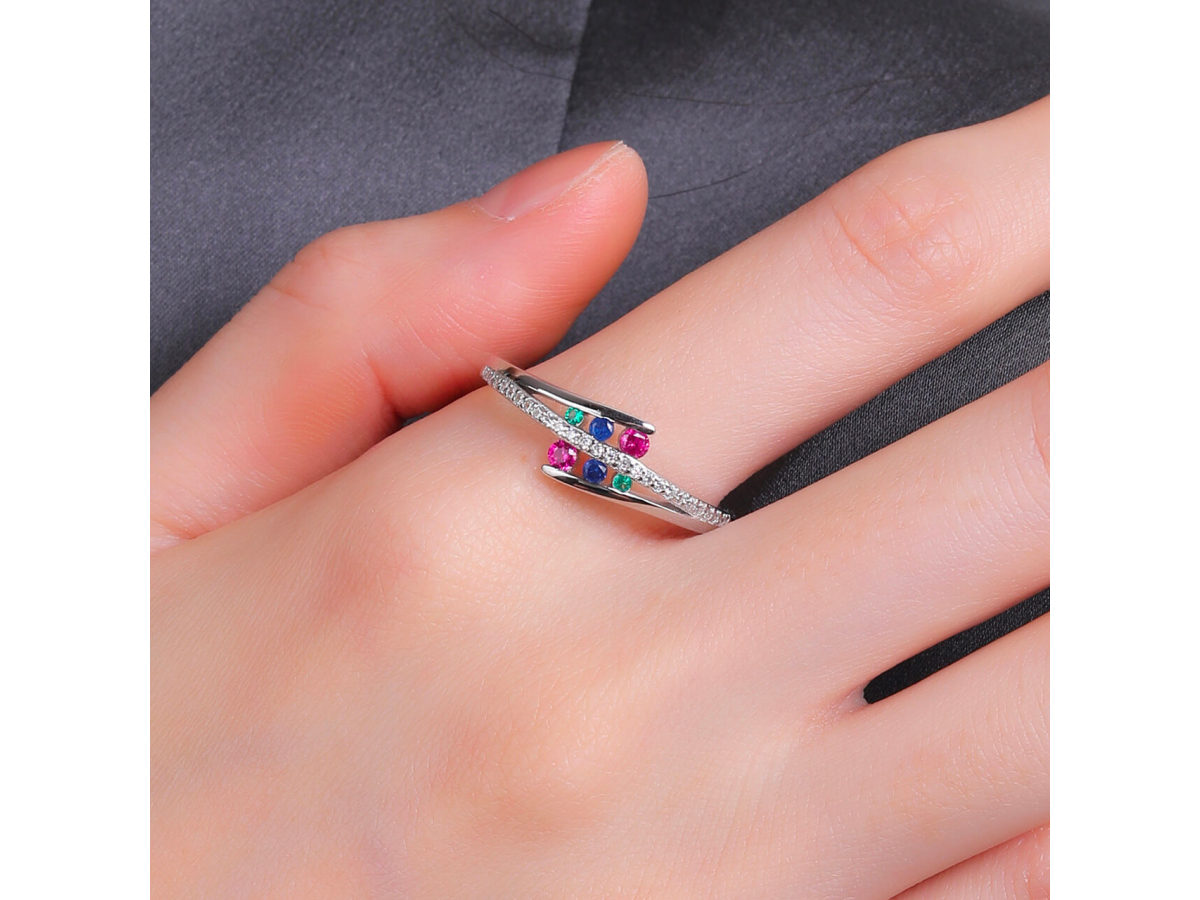 14149 Stříbrný prsten s barevnými kamínky Ag 925/1000