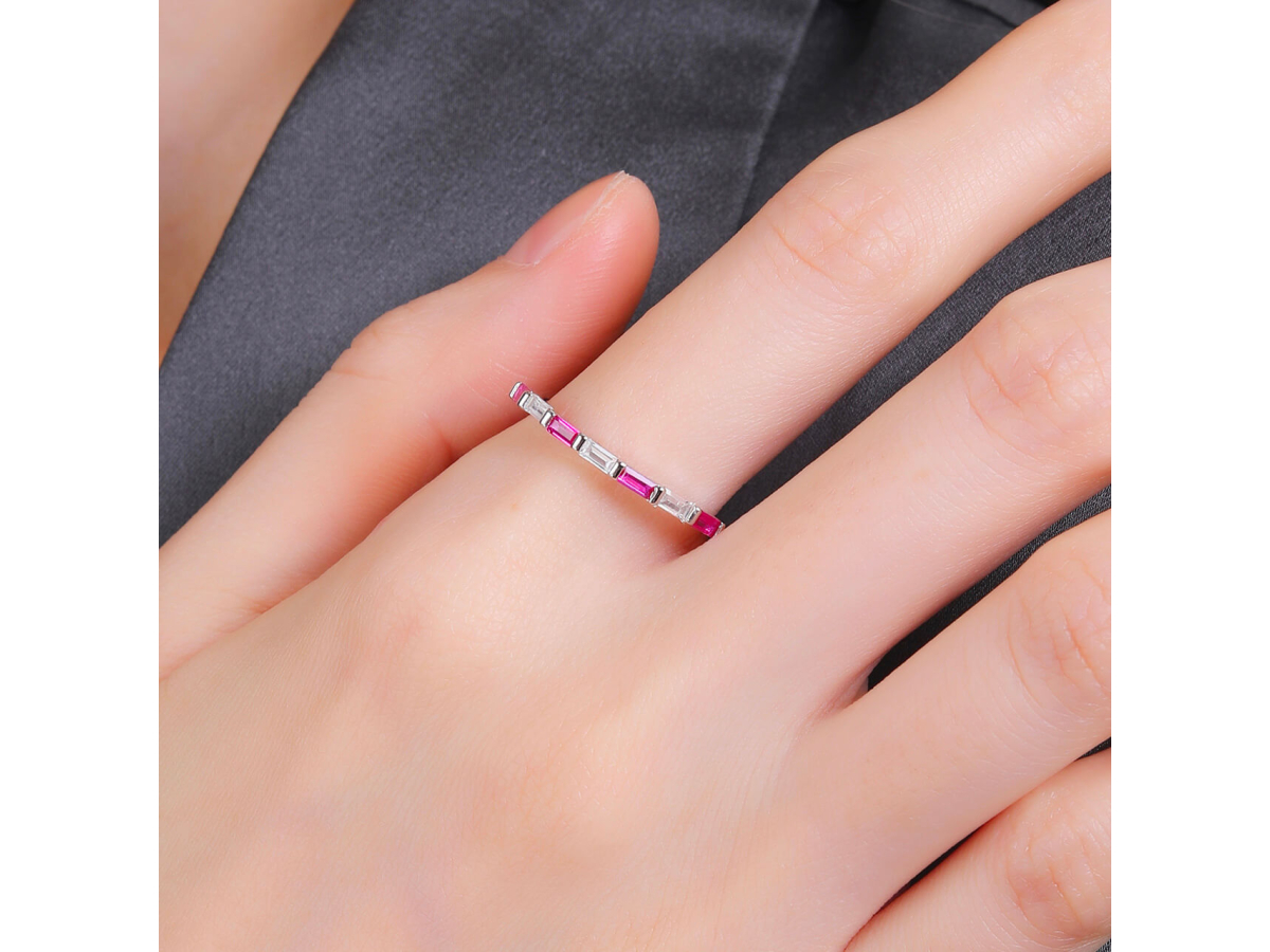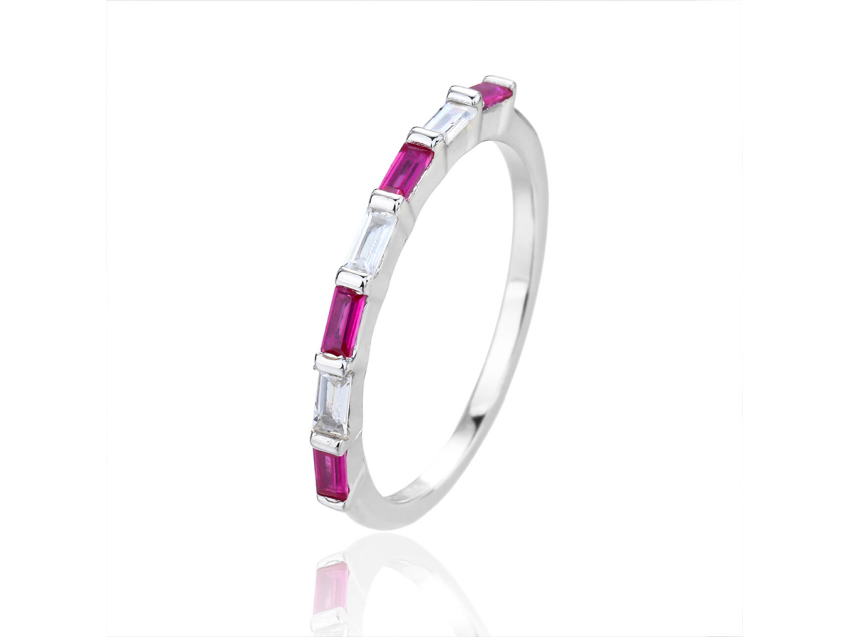 14162 Stříbrný prsten BAGUETTE rubínový Ag 925/1000