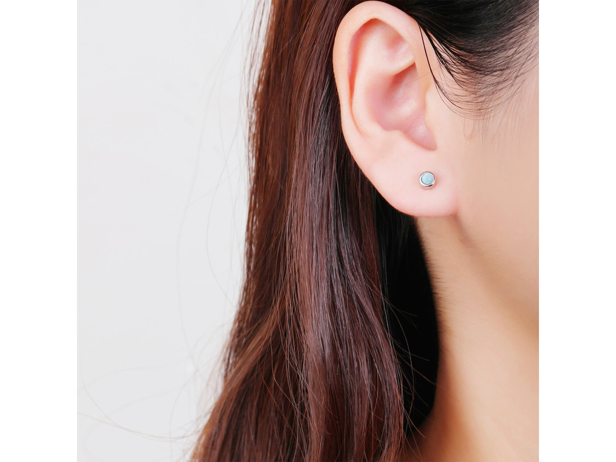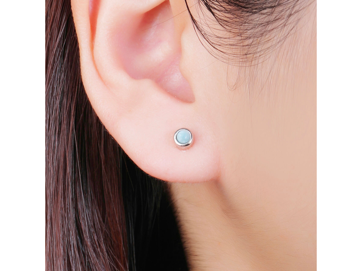 14311 Stříbrné náušnice KULATÉ larimar 4 mm Ag 925/1000