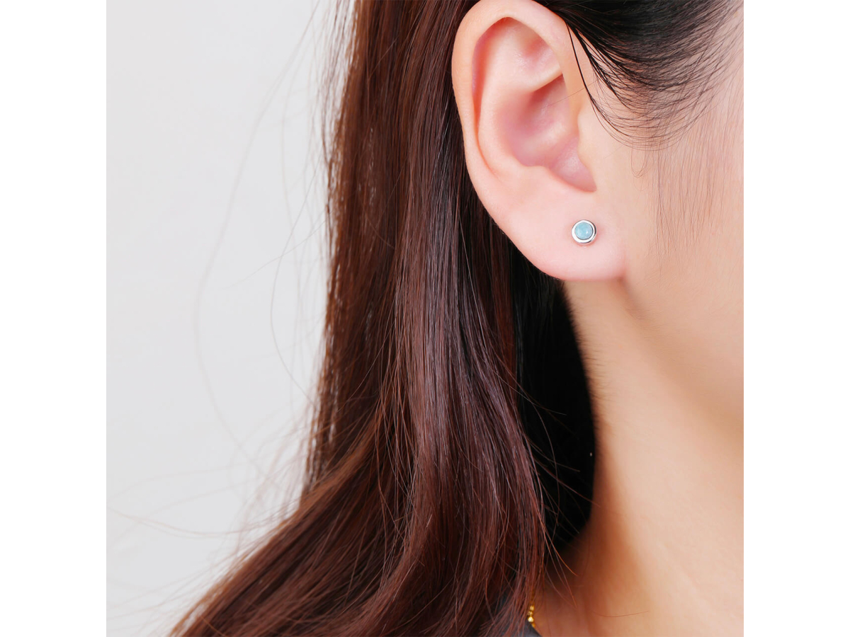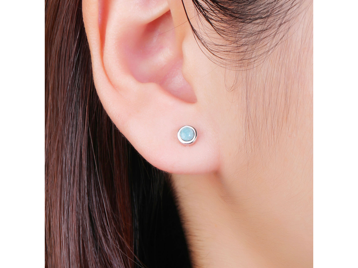 14312 Stříbrné náušnice KULATÉ larimar 5 mm Ag 925/1000