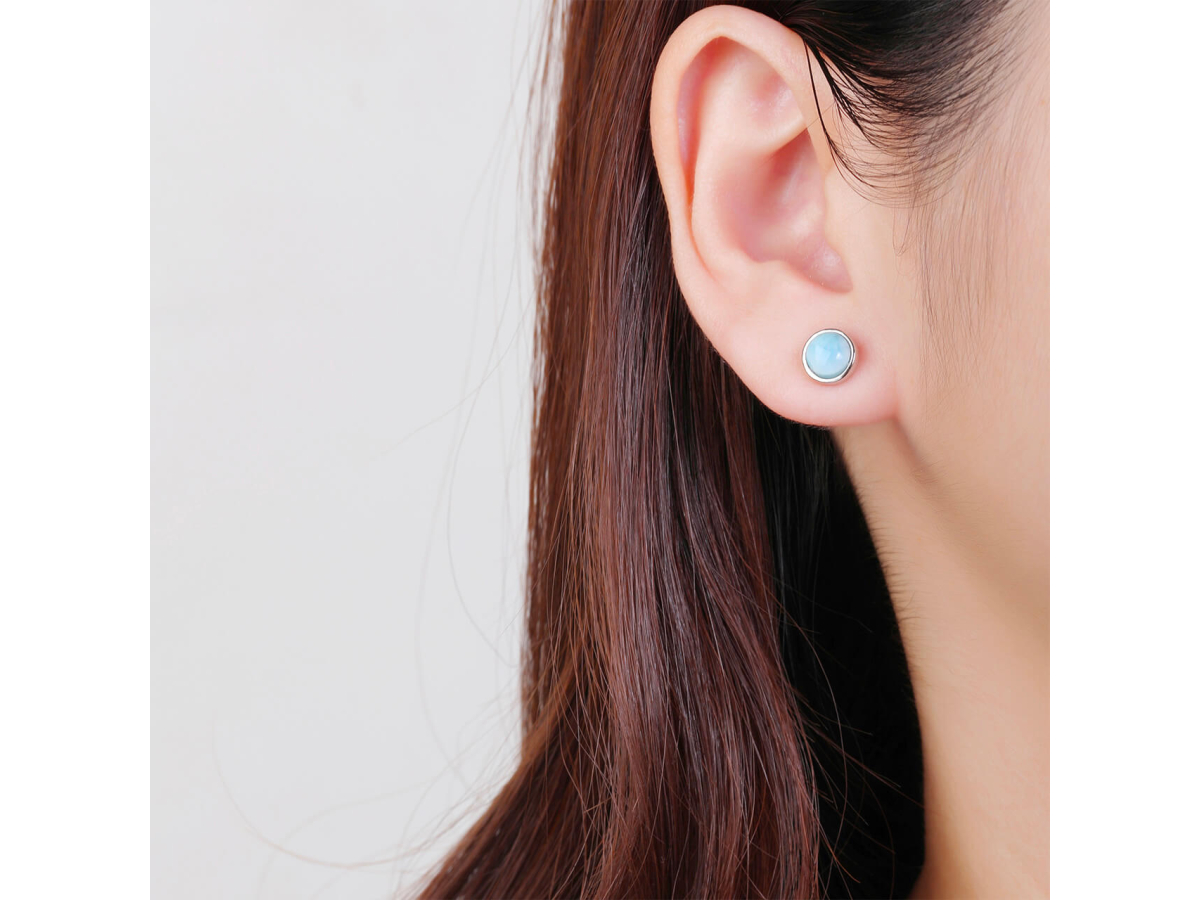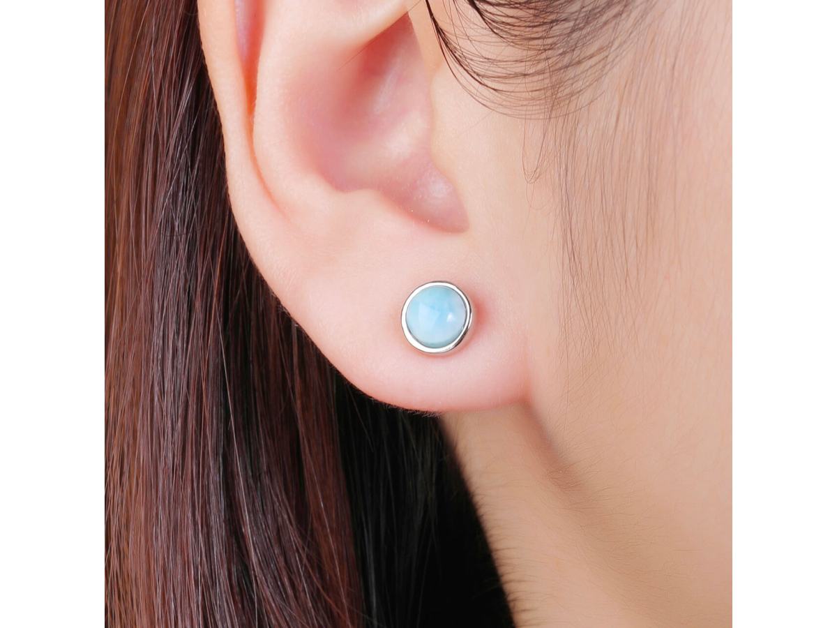 14315 Stříbrné náušnice KULATÉ larimar 8 mm Ag 925/1000