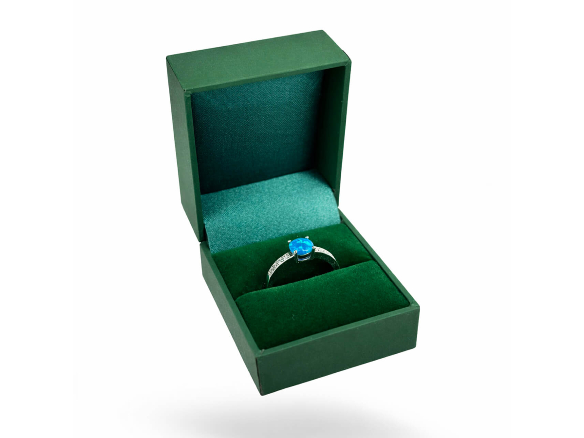 Tmavší zelené vnitřní lůžko vytváří krásný kontrast, díky kterému šperk krásně zazáří.