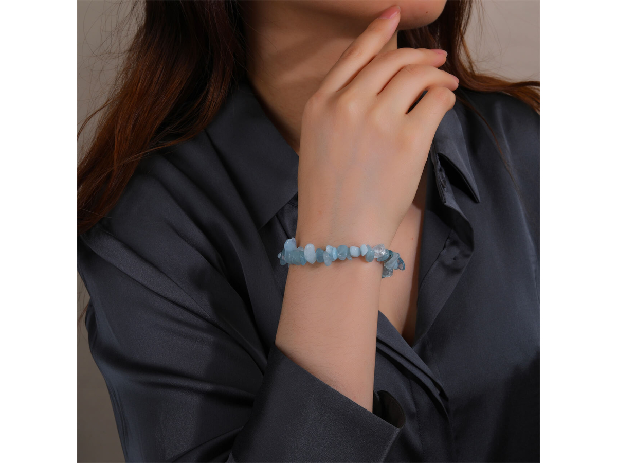 Minerální náramek AKVAMARÍN sekaný Ag 925/1000