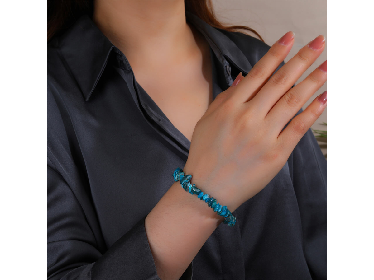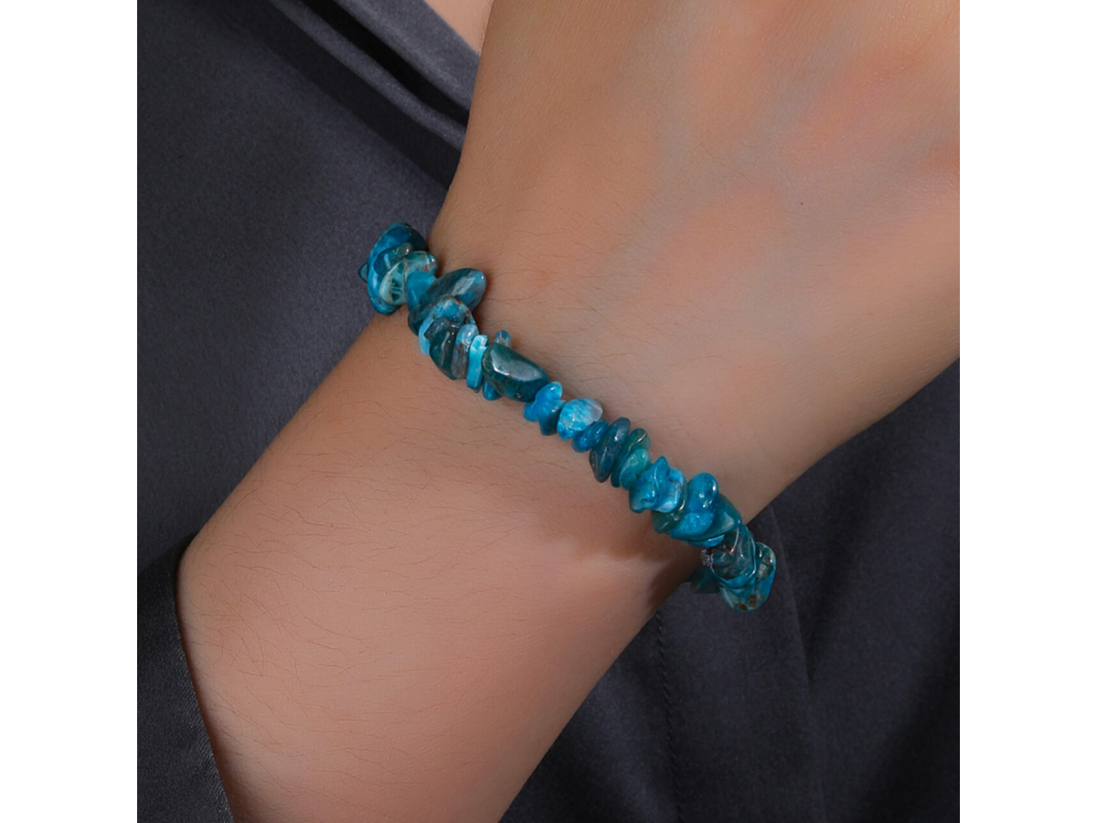 Kameny jsou navlečeny na pružné gumičce, která mu umožňuje přizpůsobit se velikosti zápěstí v rozmezí 17 až 21 cm. Díky pružnému materiálu se snadno přizpůsobí tvaru zápěstí, což zaručuje pohodlné nošení a univerzální velikost pro různé uživatele. Elegantní a praktický, tento náramek je ideální volbou pro každodenní nošení i speciální příležitosti.
