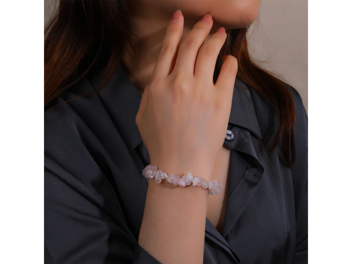 Kameny jsou navlečeny na pružné gumičce, která mu umožňuje přizpůsobit se velikosti zápěstí v rozmezí 17 až 21 cm. Díky pružnému materiálu se snadno přizpůsobí tvaru zápěstí, což zaručuje pohodlné nošení a univerzální velikost pro různé uživatele. Elegantní a praktický, tento náramek je ideální volbou pro každodenní nošení i speciální příležitosti.