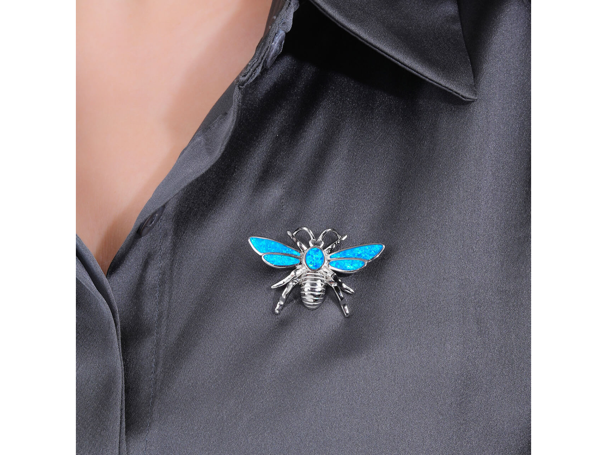 Stříbrná brož VČELA modrý opál Ag 925/1000
