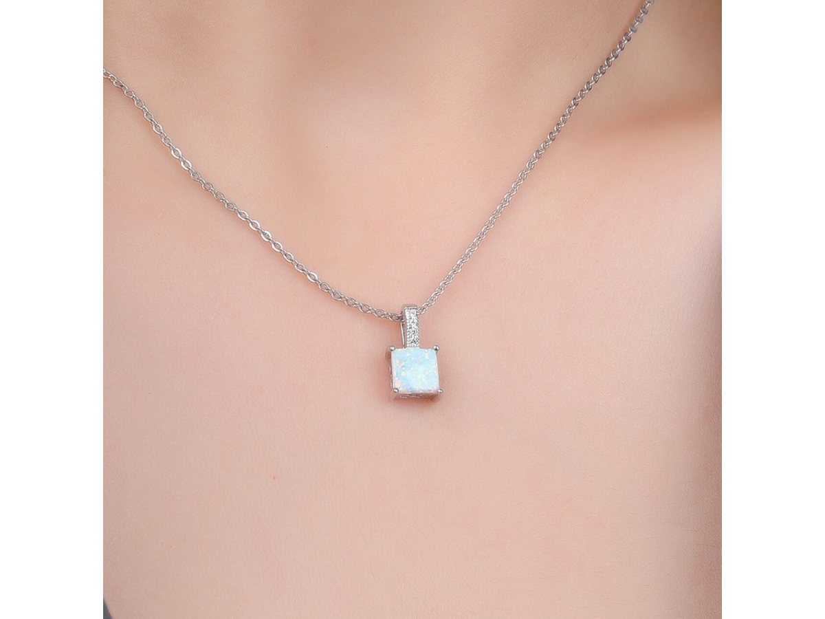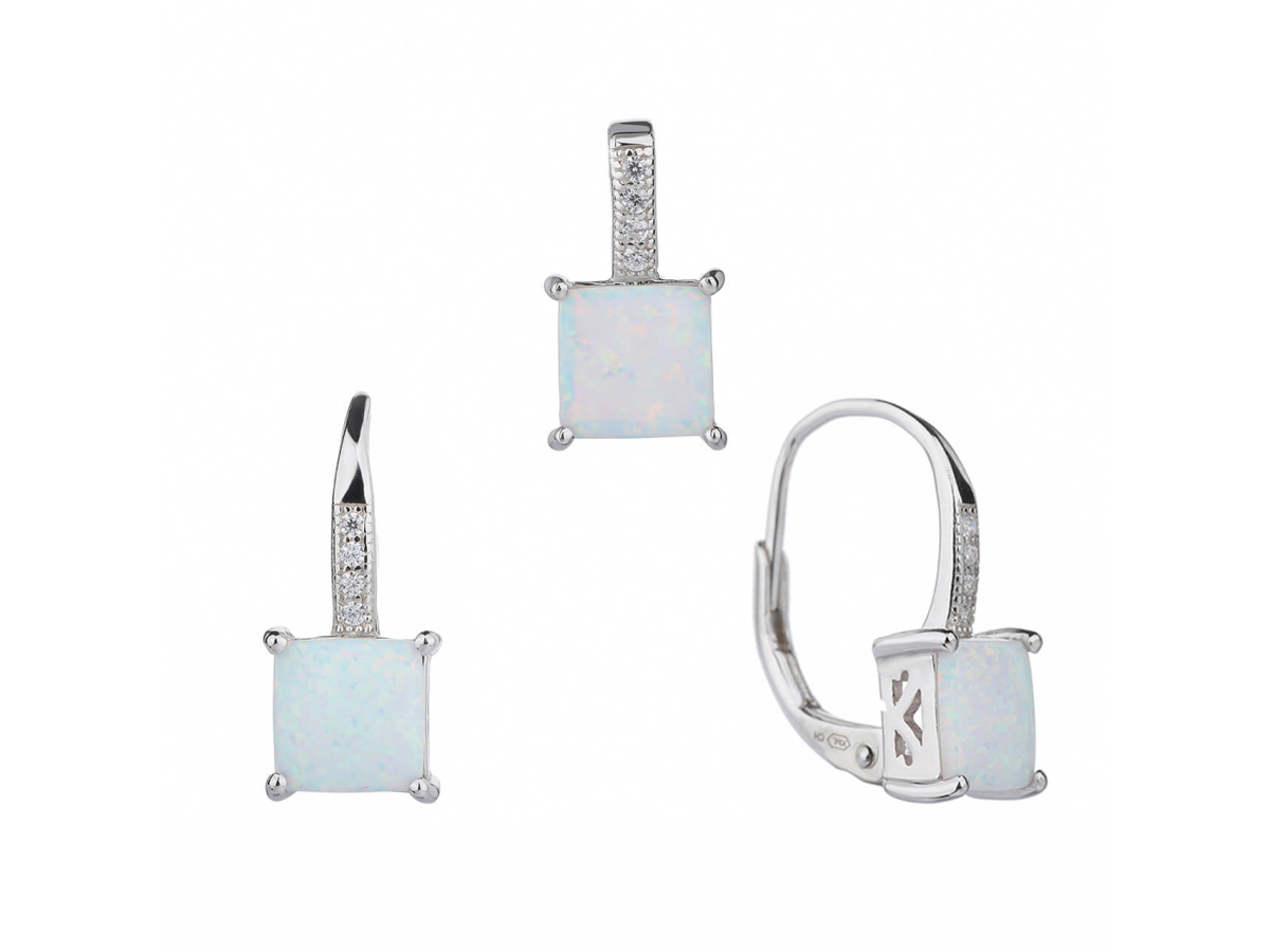 Stříbrná souprava ČTVERCOVÁ bílý OPÁL Ag 925/1000