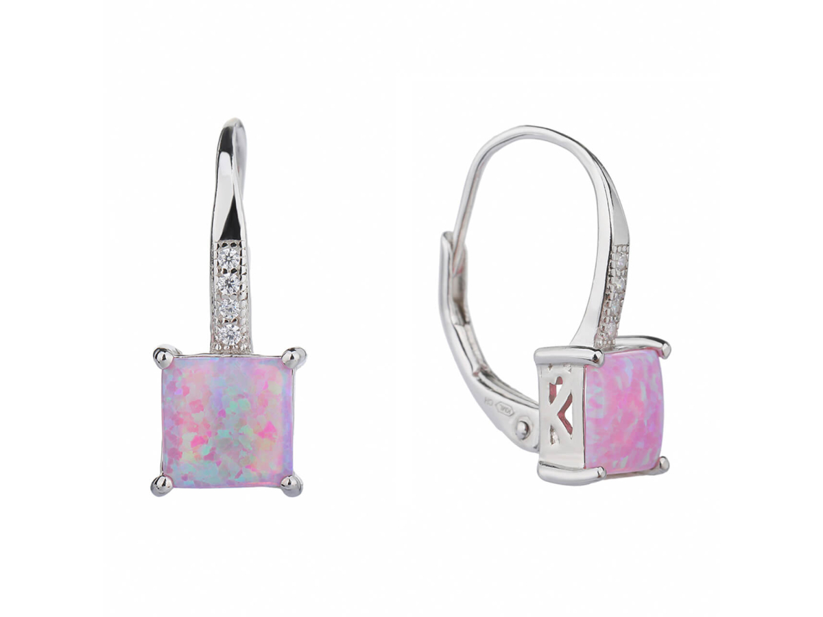 Stříbrná souprava ČTVERCOVÁ růžový OPÁL Ag 925/1000