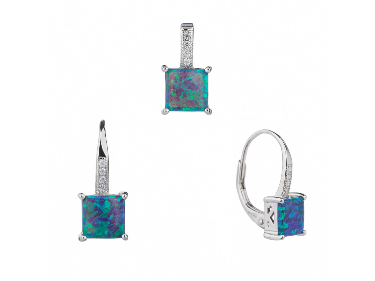 Stříbrná souprava s duhovým opálem. Ideálně slazené šperky náušnice s přívěskem. Zajistí vám neustálou ladnost a eleganci v každé situaci.