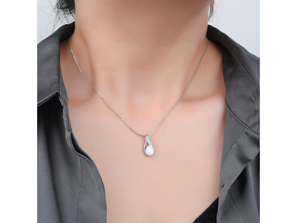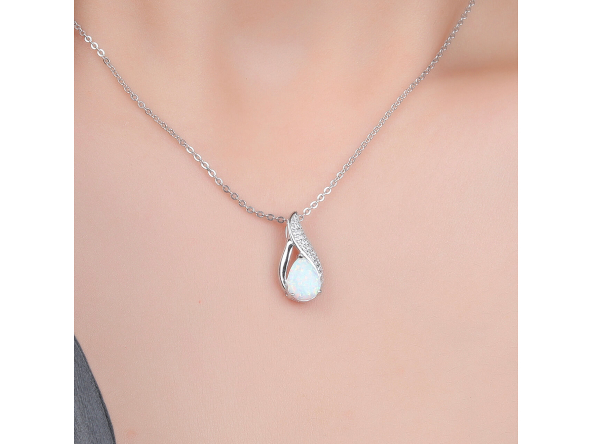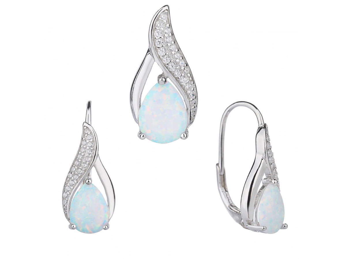 Stříbrná souprava KAPKA bílý opál Ag 925/1000