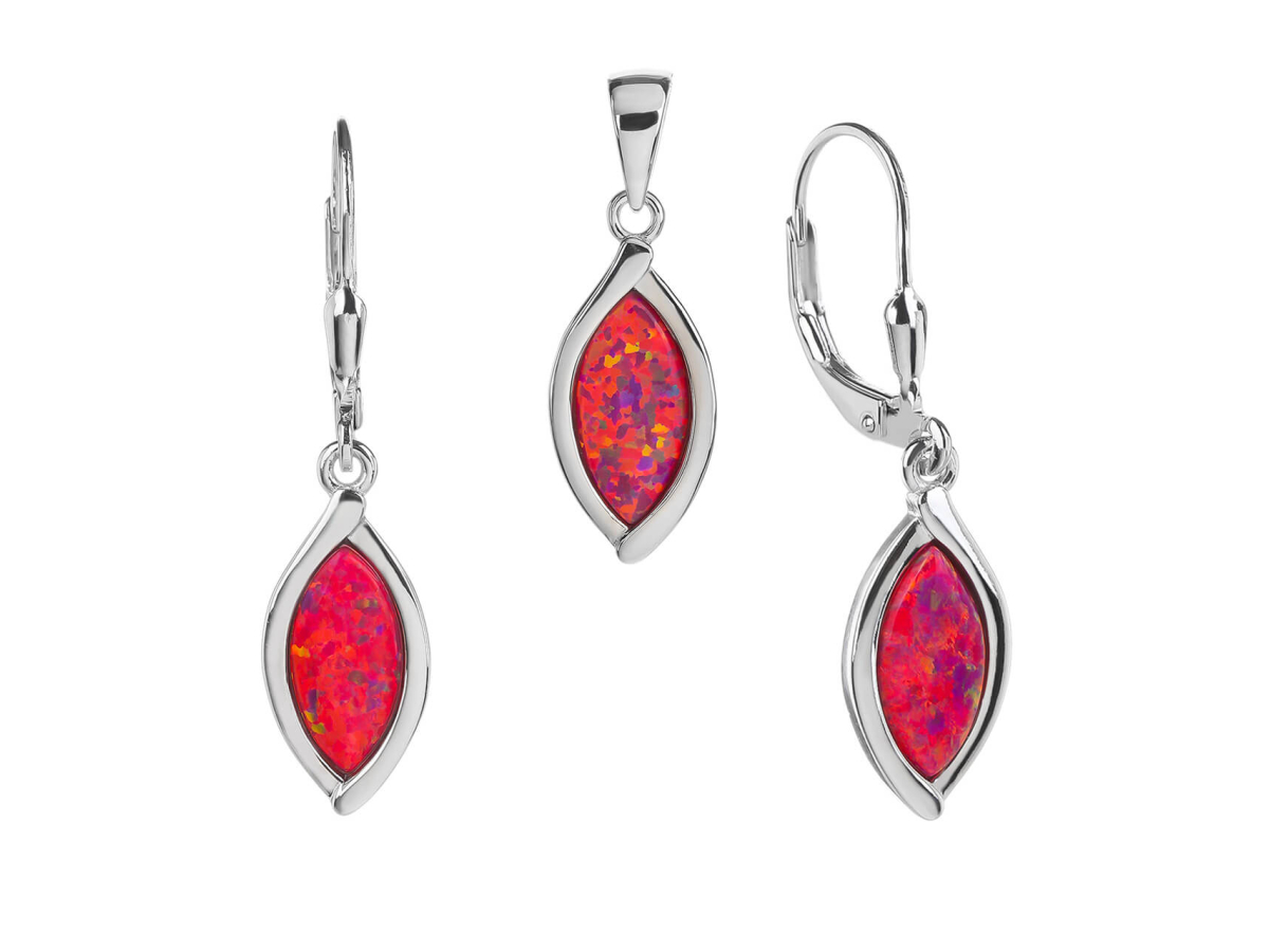Stříbrná souprava KAPKA karmínový OPÁL Ag 925/1000