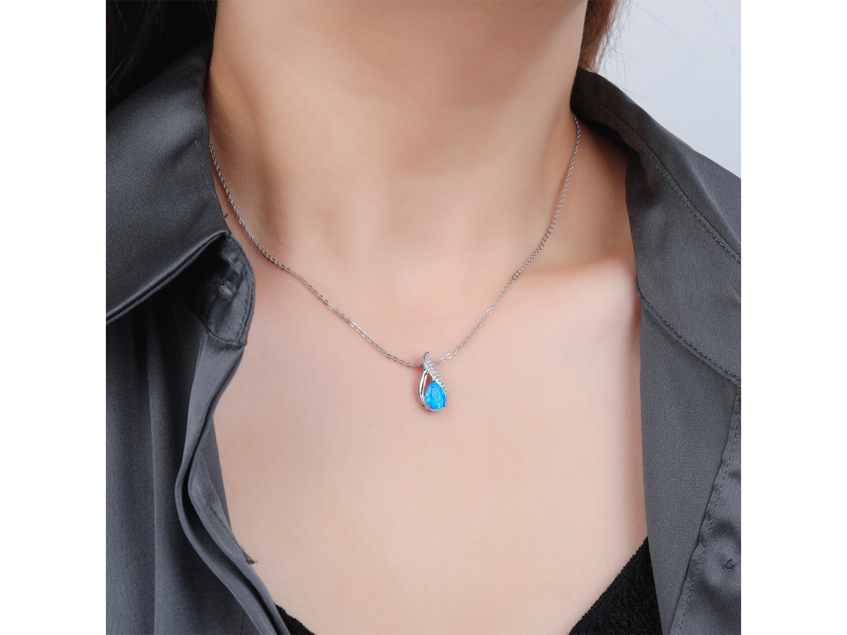 Stříbrná souprava KAPKA modrý opál Ag 925/1000