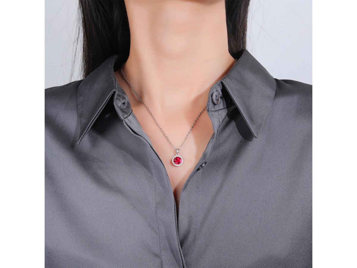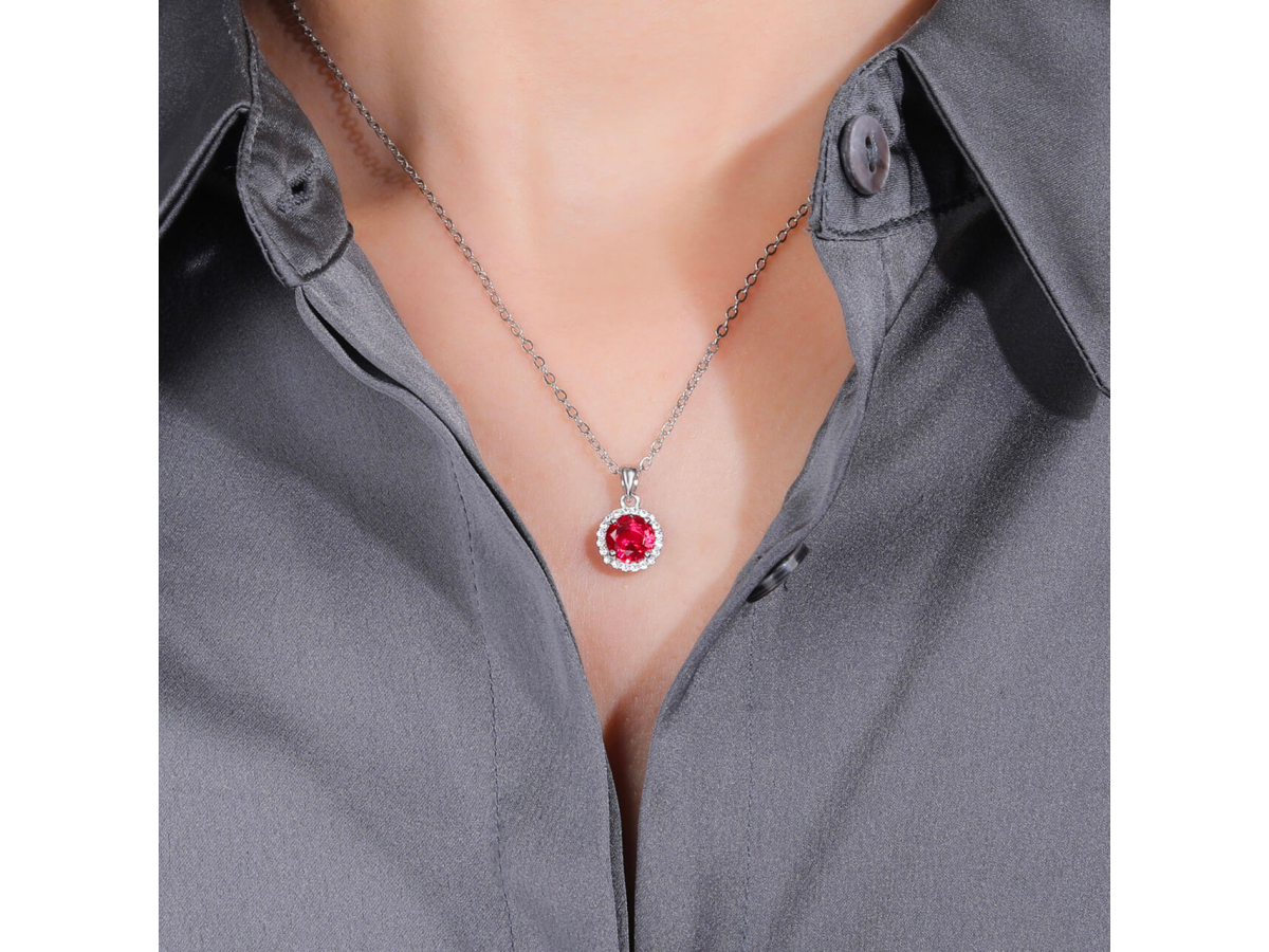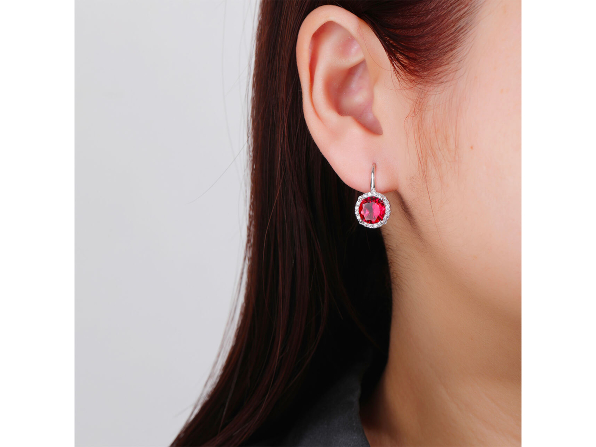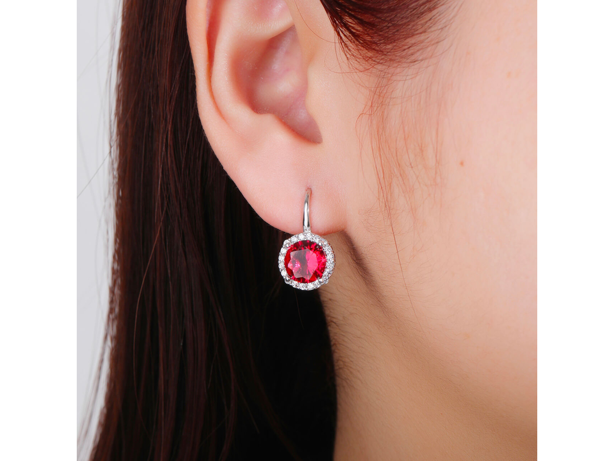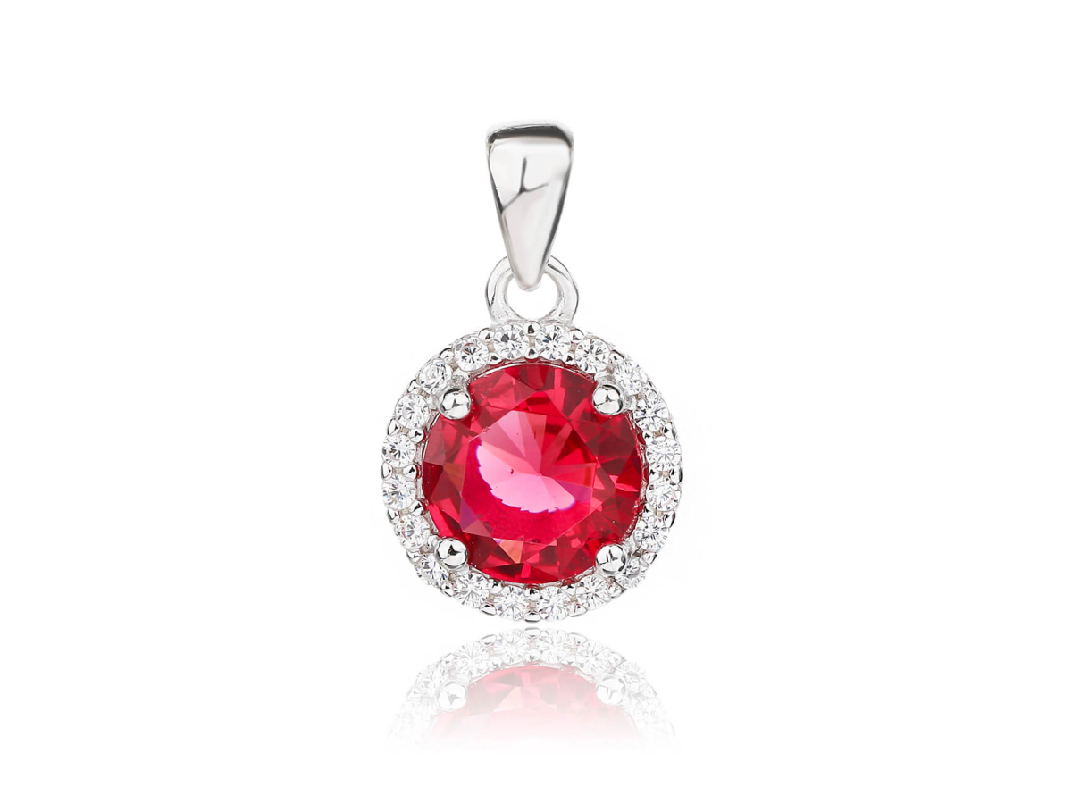- Rubínově červené zirkony v kulatém tvaru vyzařují vášeň a energii. Tento odstín okamžitě přitahuje pohled a zvýrazní vaši ženskost.