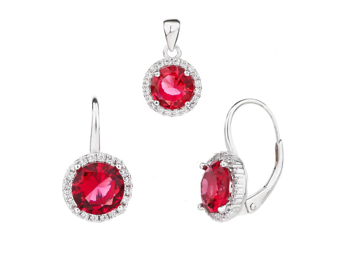 Stříbrná souprava KULATÁ červená Ag 925/1000