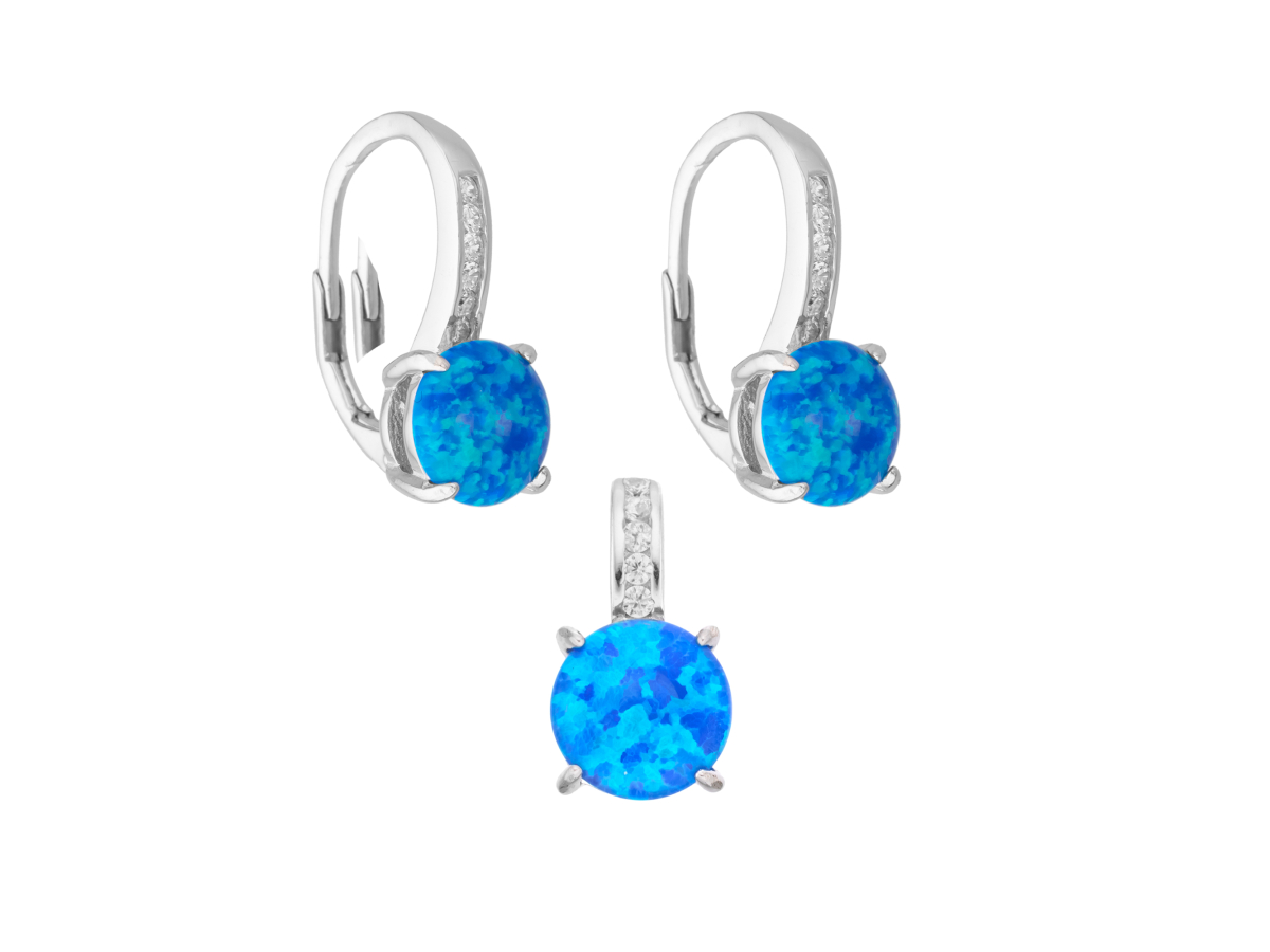 Stříbrná souprava KULATÁ modrý OPÁL Ag 925/1000