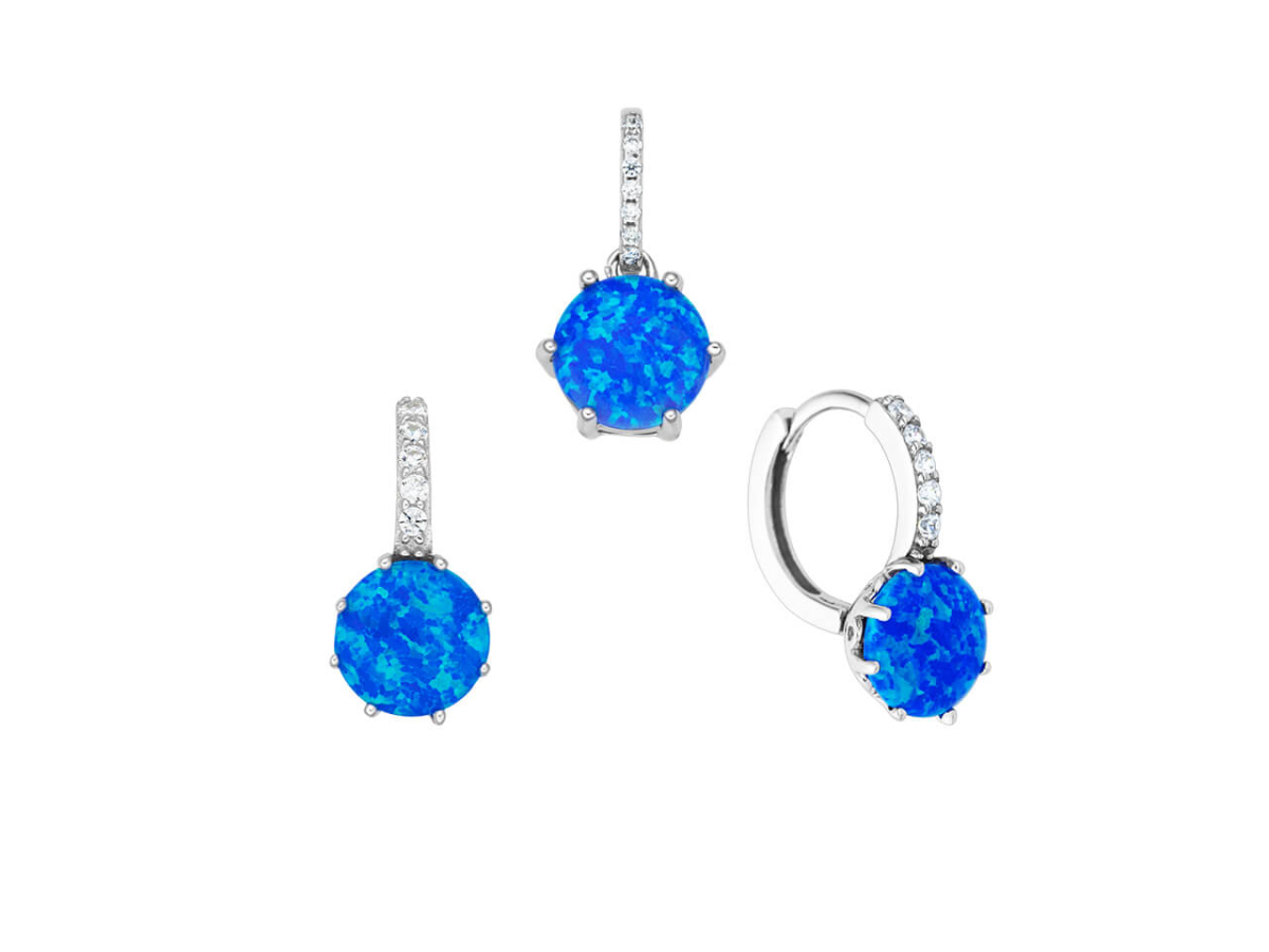 Stříbrná souprava KULATÉ modré Ag 925/1000