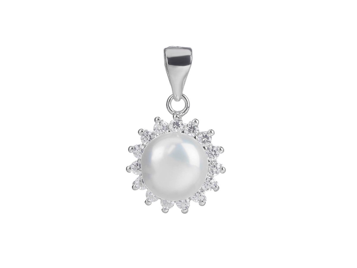 Stříbrná souprava s říční perlou a krásnými čirými zirkony. Ideálně slazené šperky náušnice s přívěskem. Zajistí vám neustálou ladnost a eleganci...
