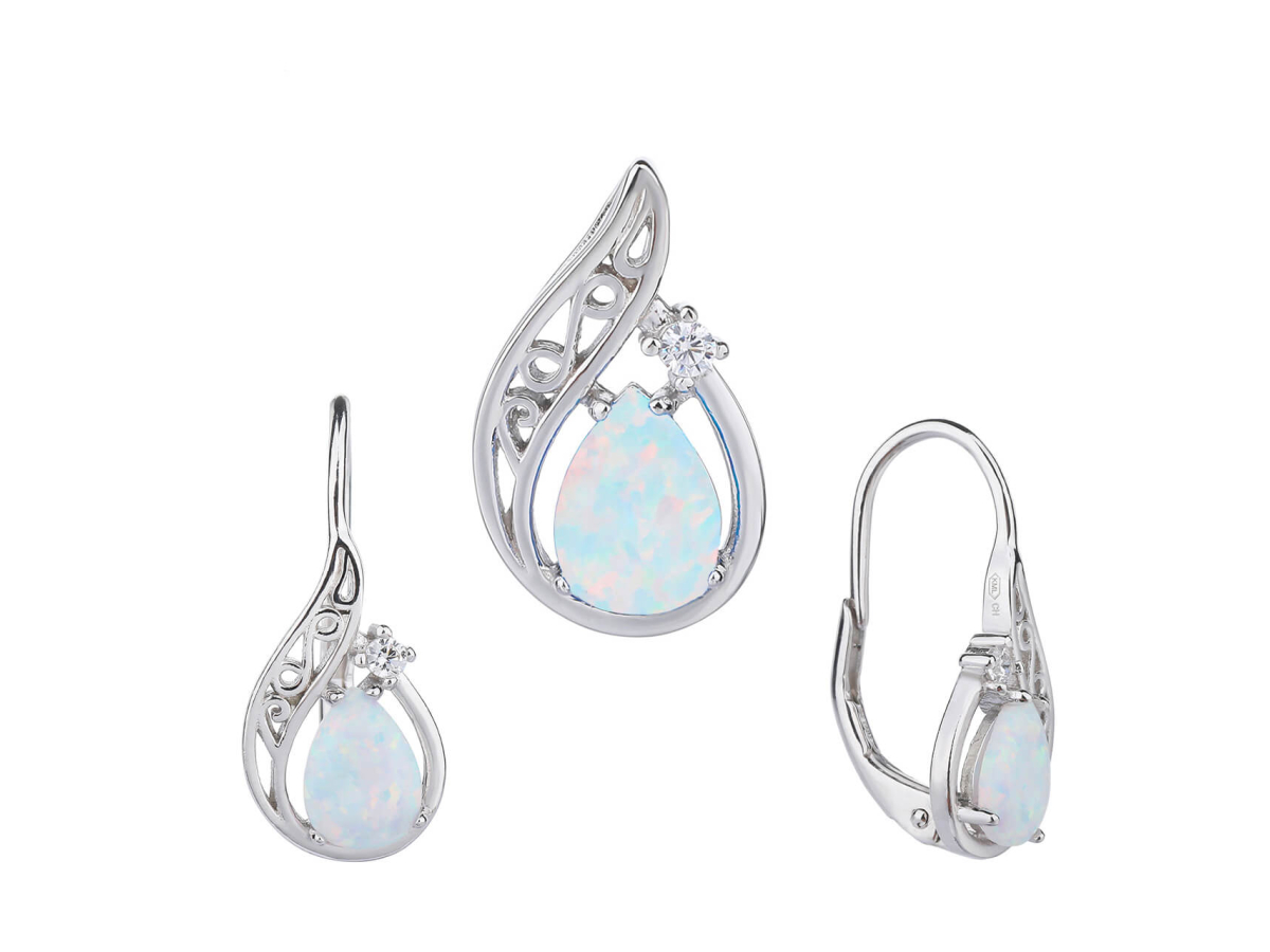 Stříbrná souprava SLZA bílý OPÁL Ag 925/1000