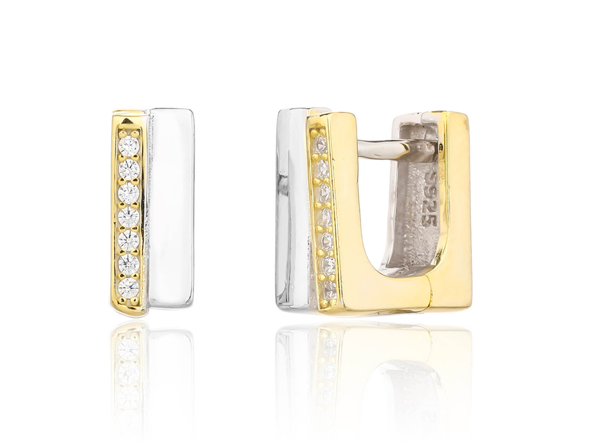 Stříbrné náušnice HRANOLKY se zirkony zlacené Ag 925/1000