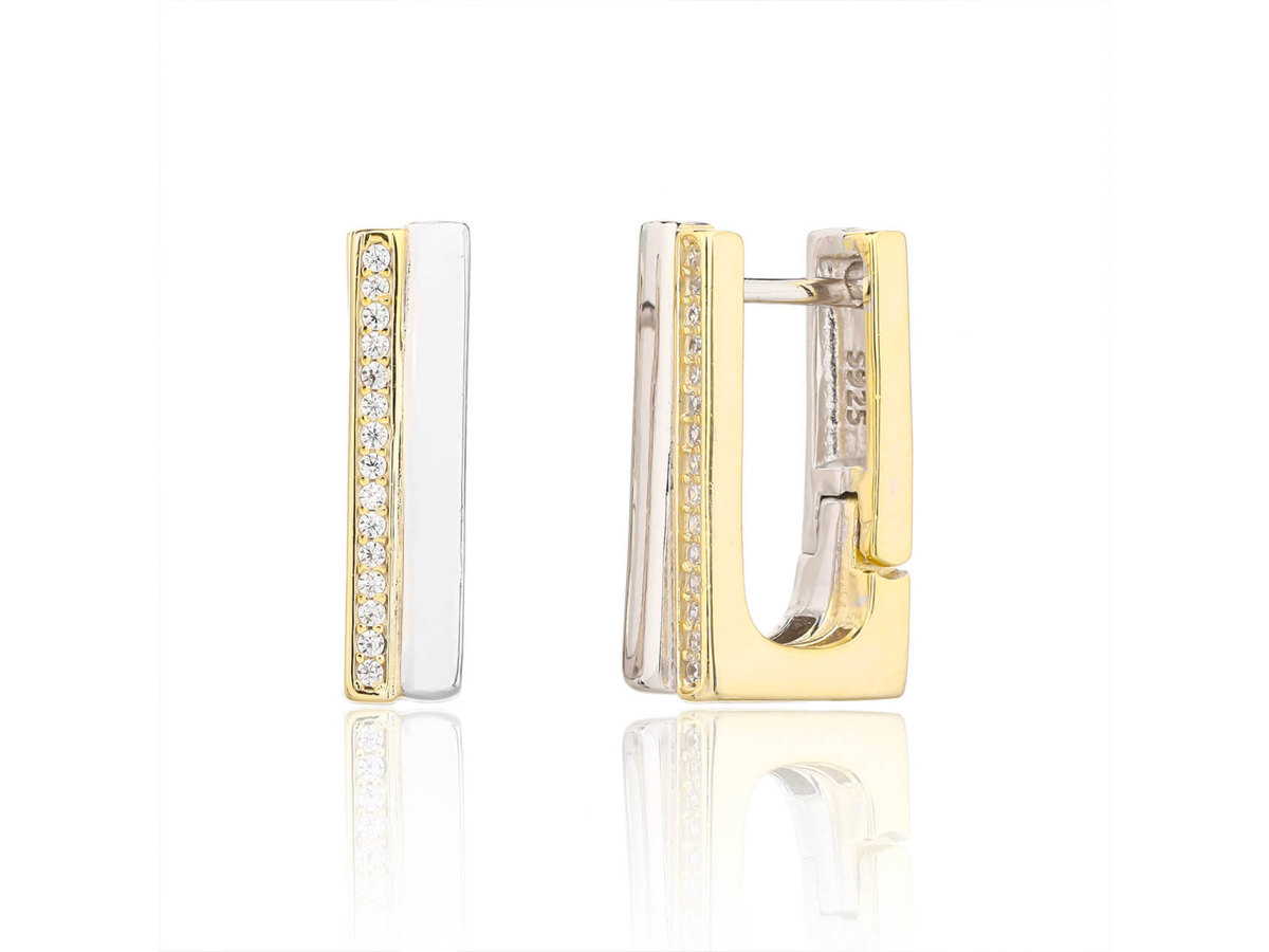 Stříbrné náušnice HRANOLKY se zirkony zlacené Ag 925/1000