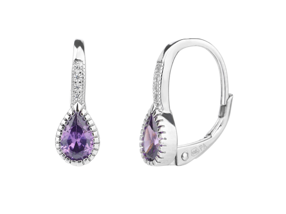 Stříbrné náušnice KAPIČKA ametyst Ag 925/1000