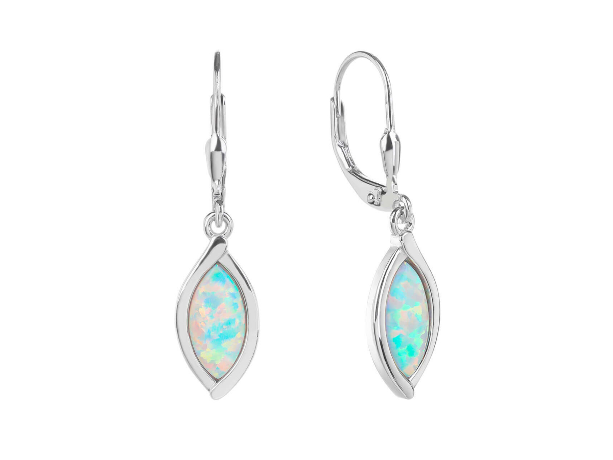 Krásné a elegantní náušnice s visacím patentem Osazené syntetickým opálem Špičková kvalita šperku z poctivého stříbra 925/1000 Označené puncem...