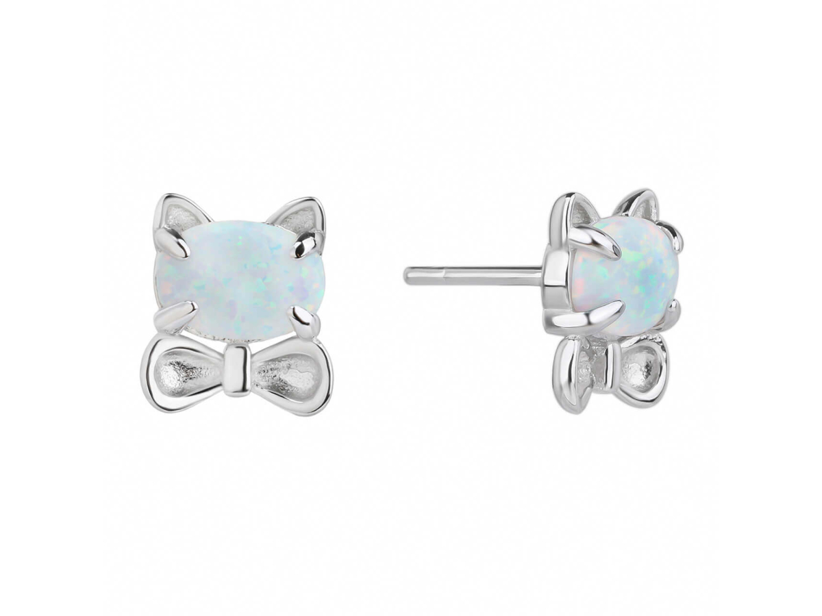 Stříbrné náušnice KOČKA bílý OPÁL Ag 925/1000