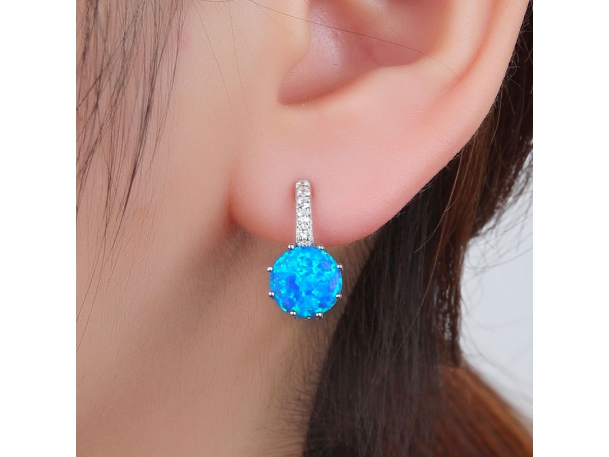 Stříbrné náušnice KROUŽKY modrý OPÁL Ag 925/1000