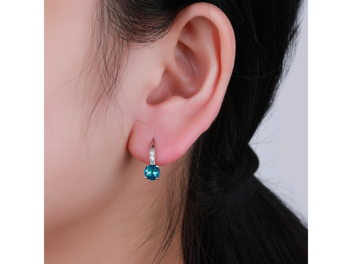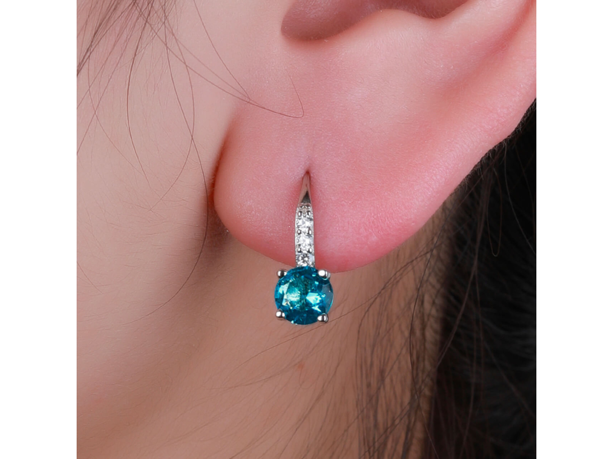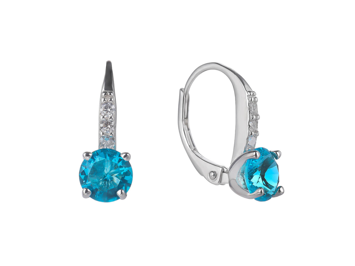 Stříbrné náušnice KULATÉ aqua 6 mm Ag 925/1000