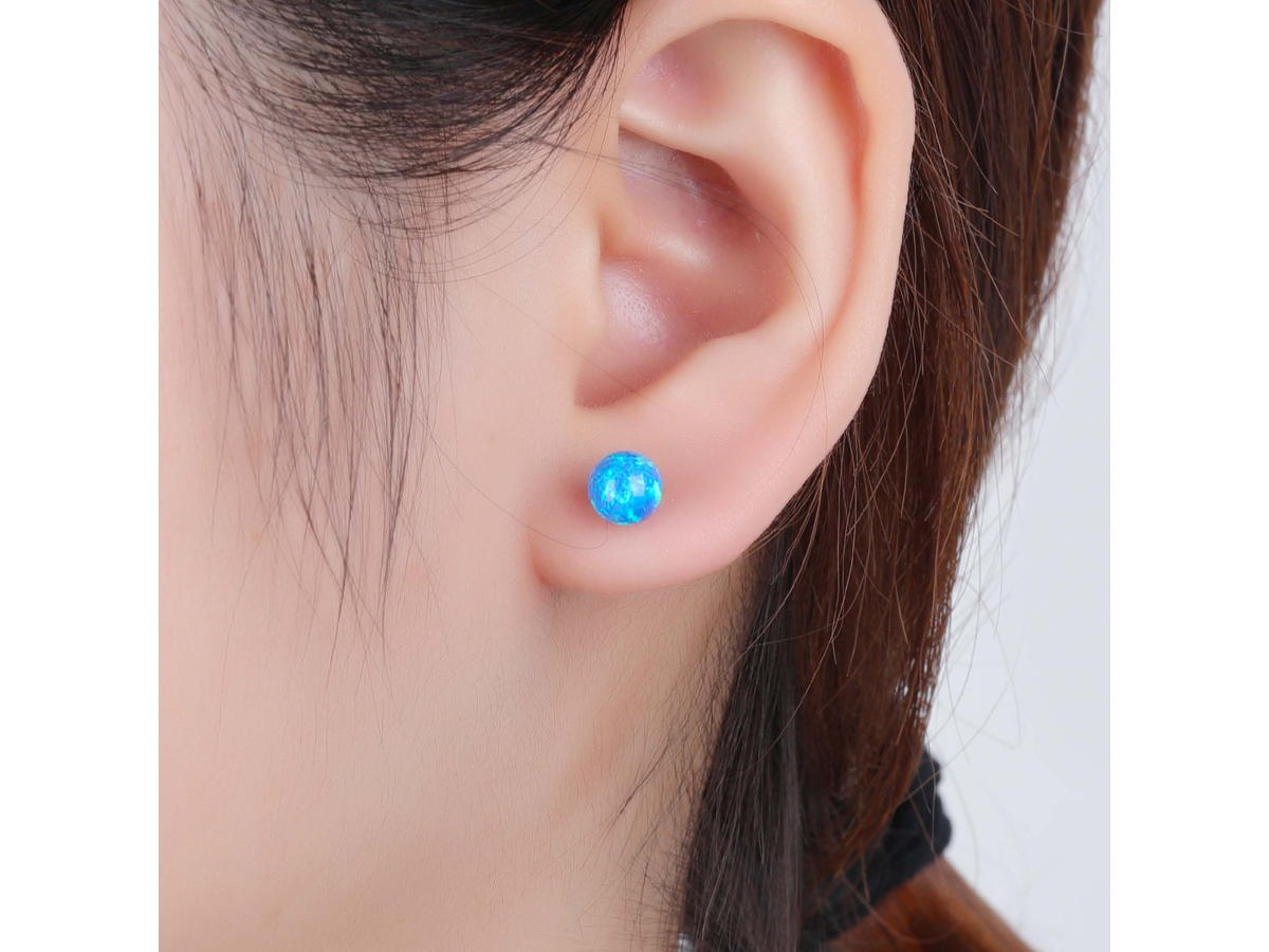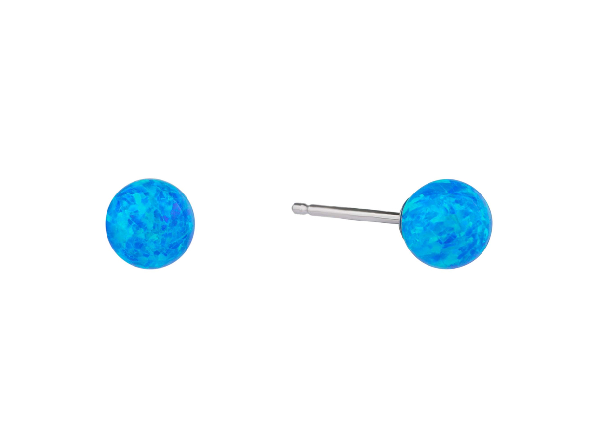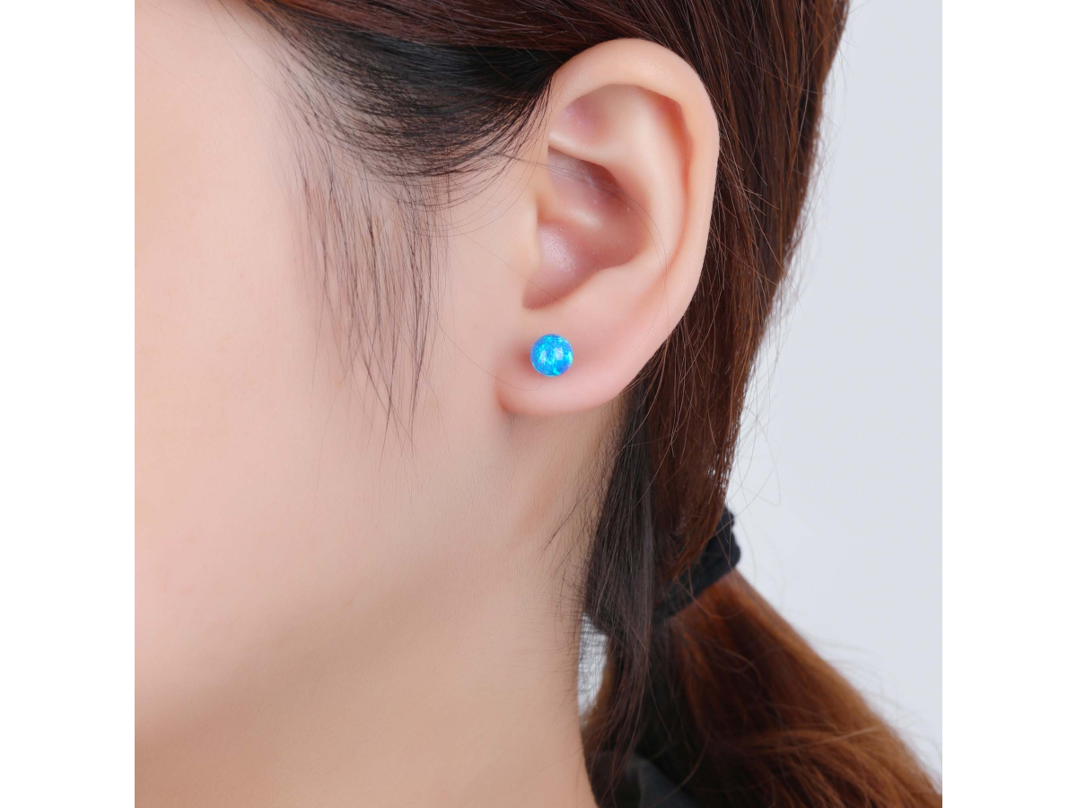 Stříbrné náušnice KULIČKY 6 mm modrý OPÁL Ag 925/1000