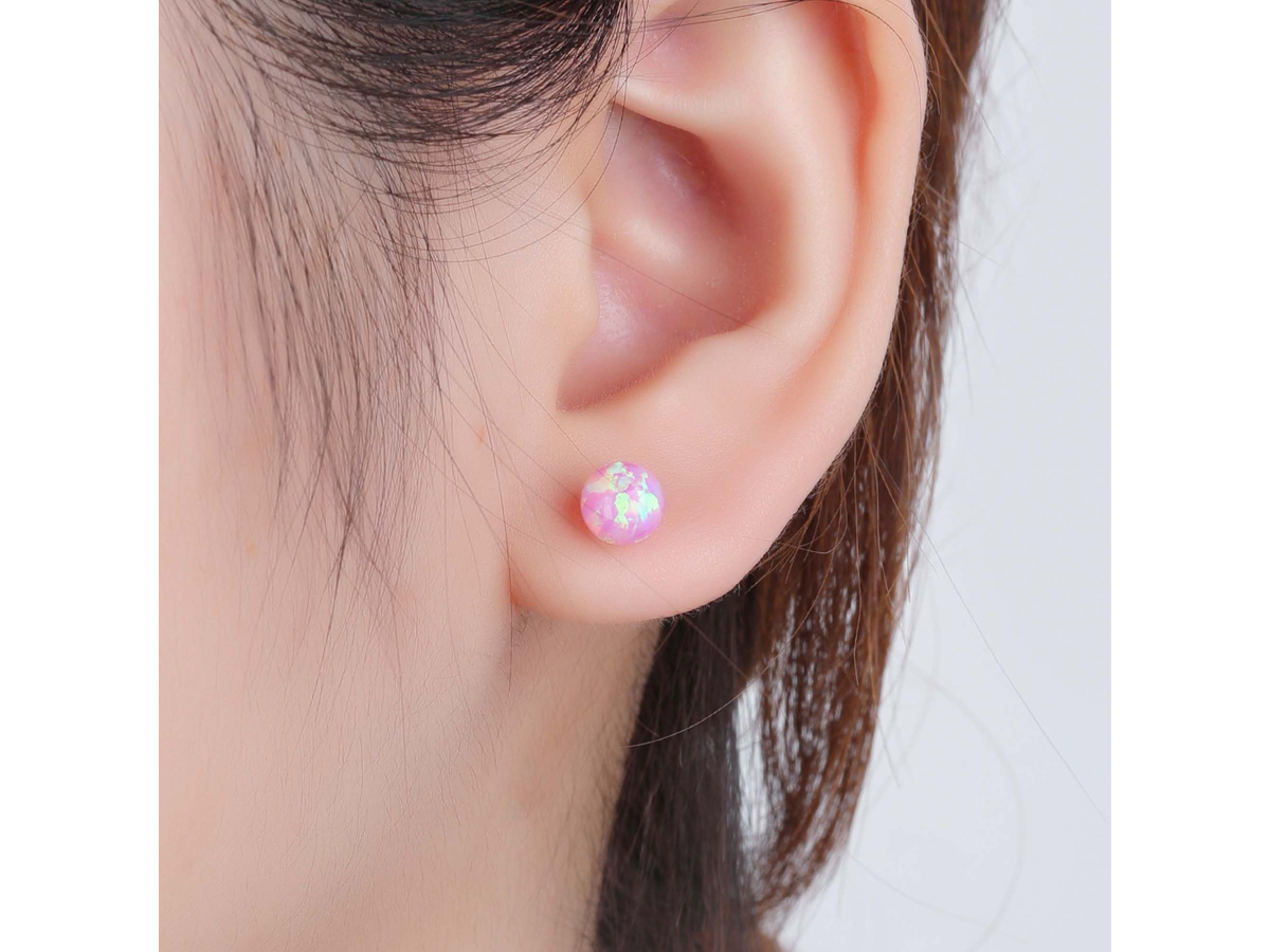 Stříbrné náušnice KULIČKY 6 mm růžový OPÁL Ag 925/1000