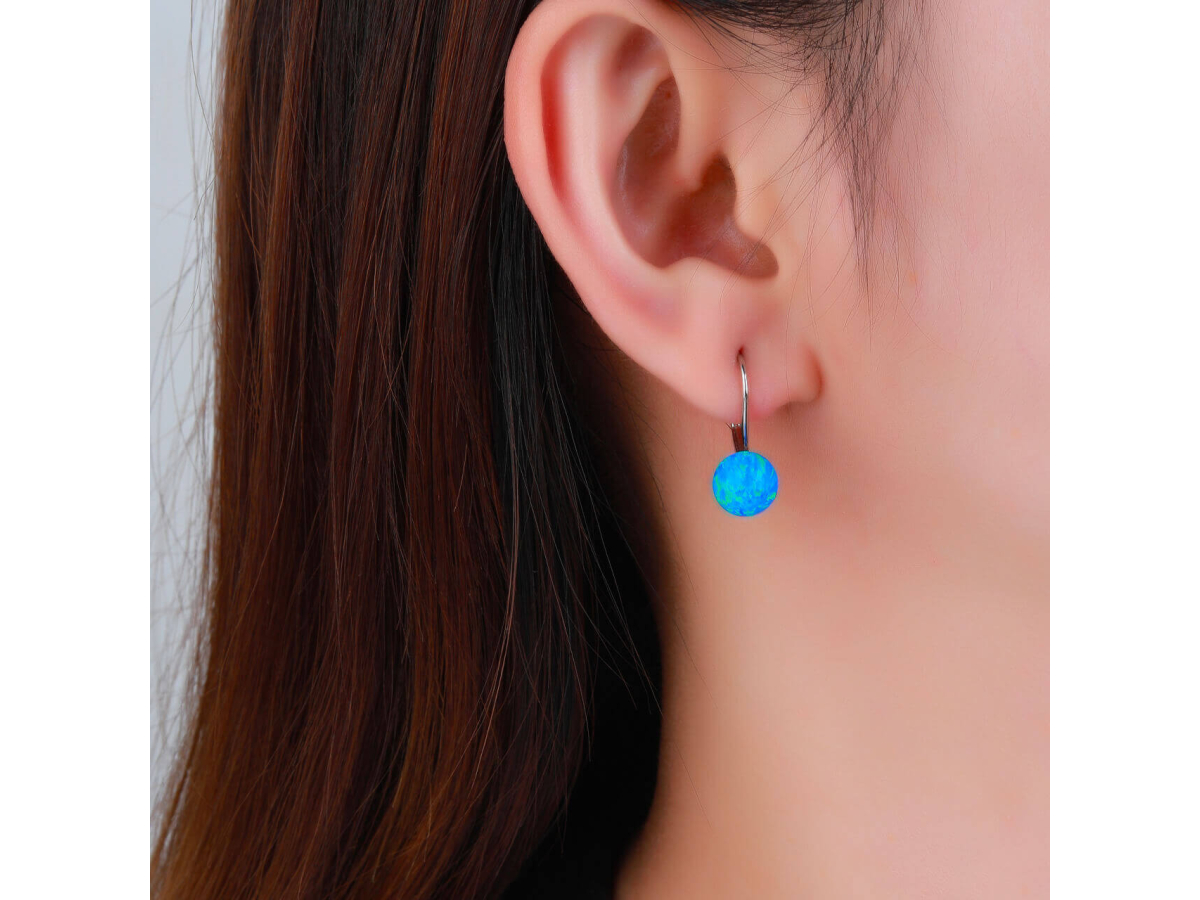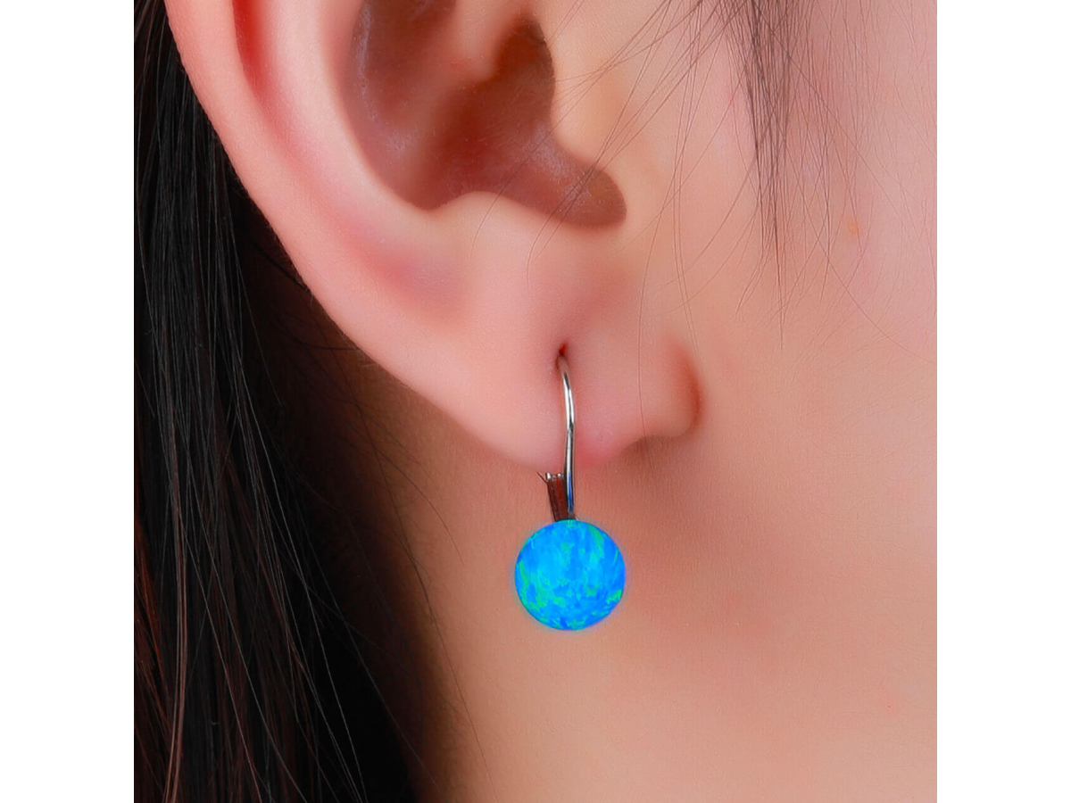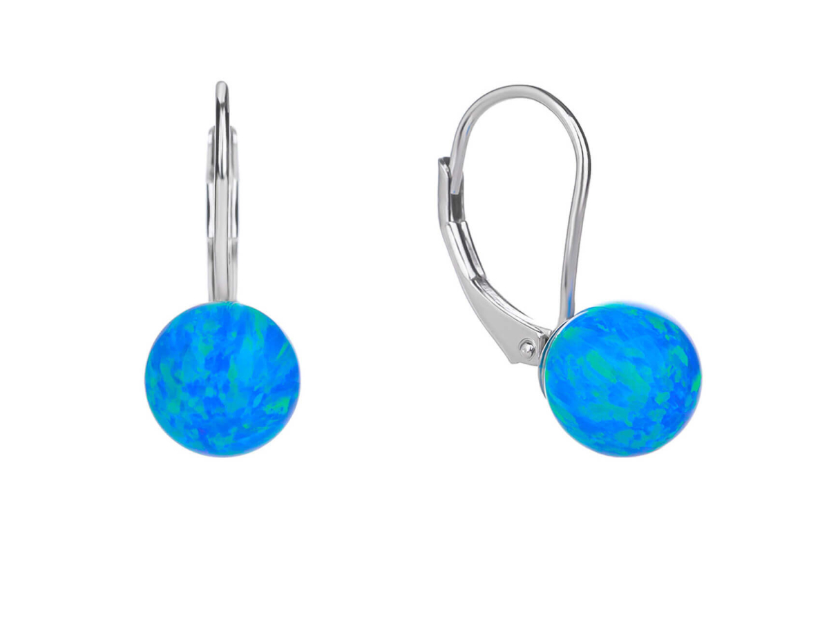 Stříbrné náušnice KULIČKY 8 mm modrý OPÁL Ag 925/1000