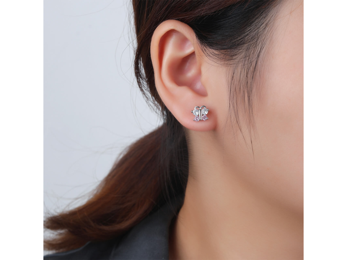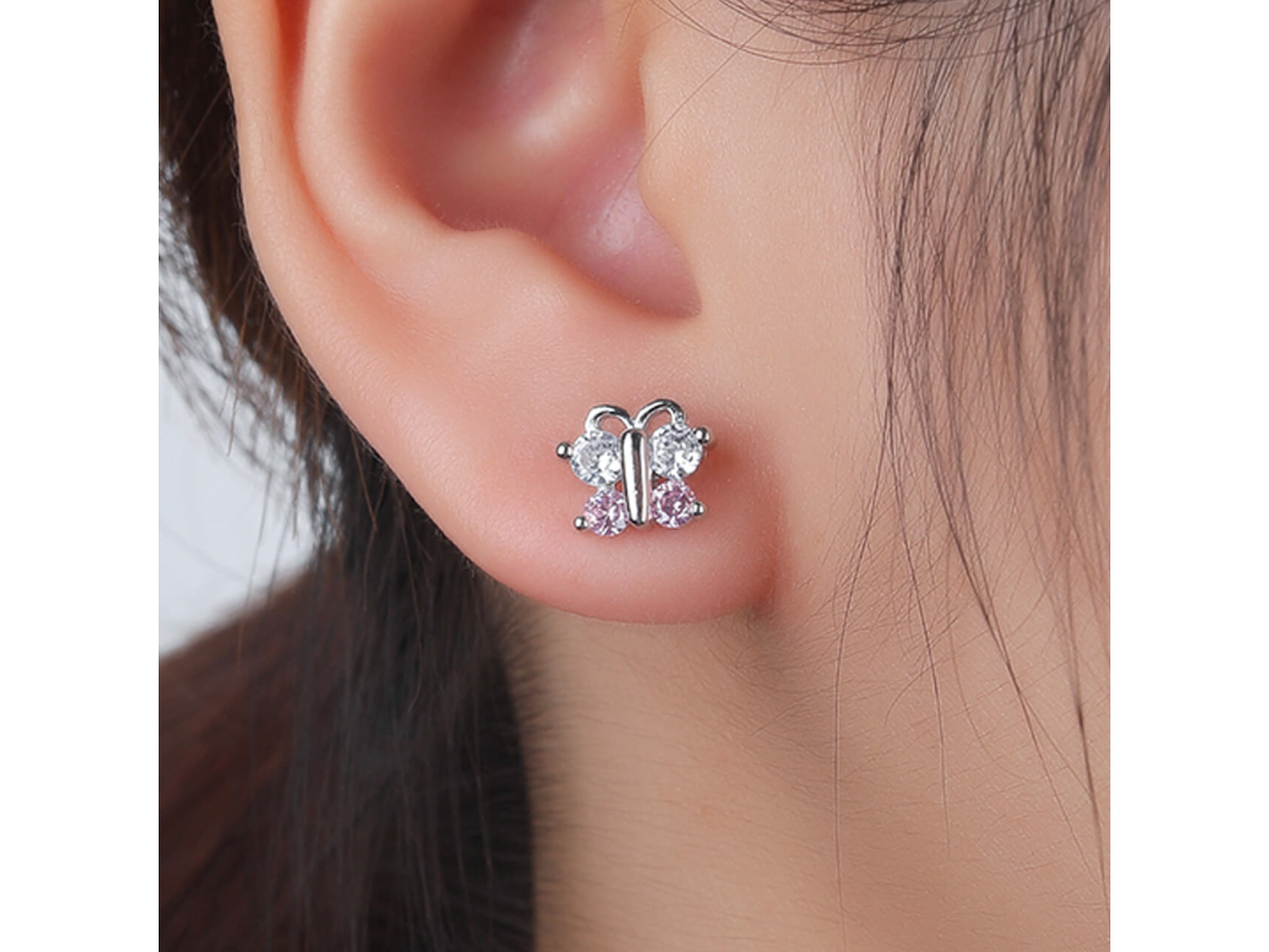Stříbrné náušnice MOTÝL RŮŽOVÝ šroubek Ag 925/1000