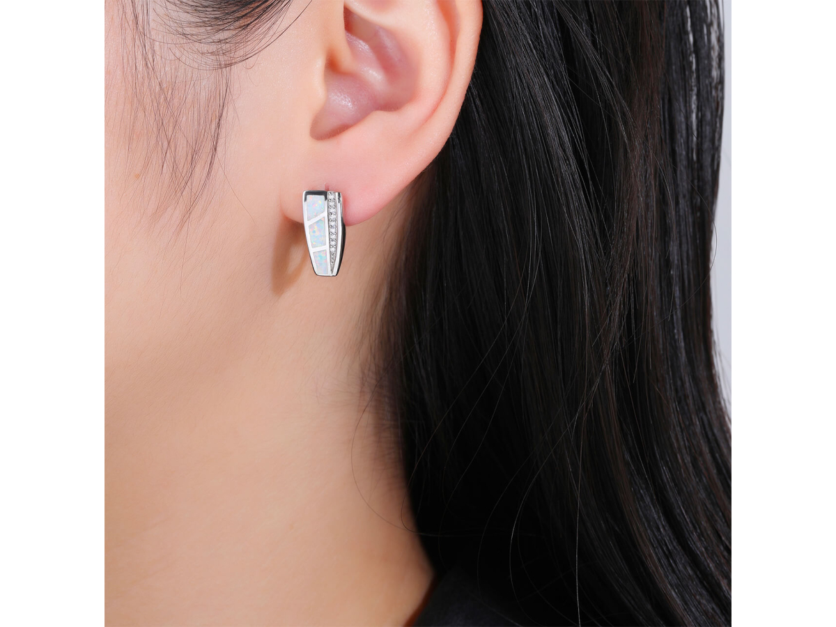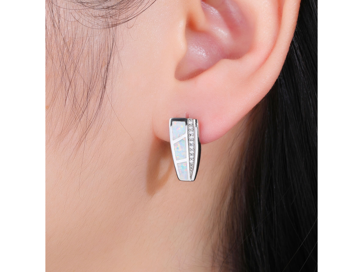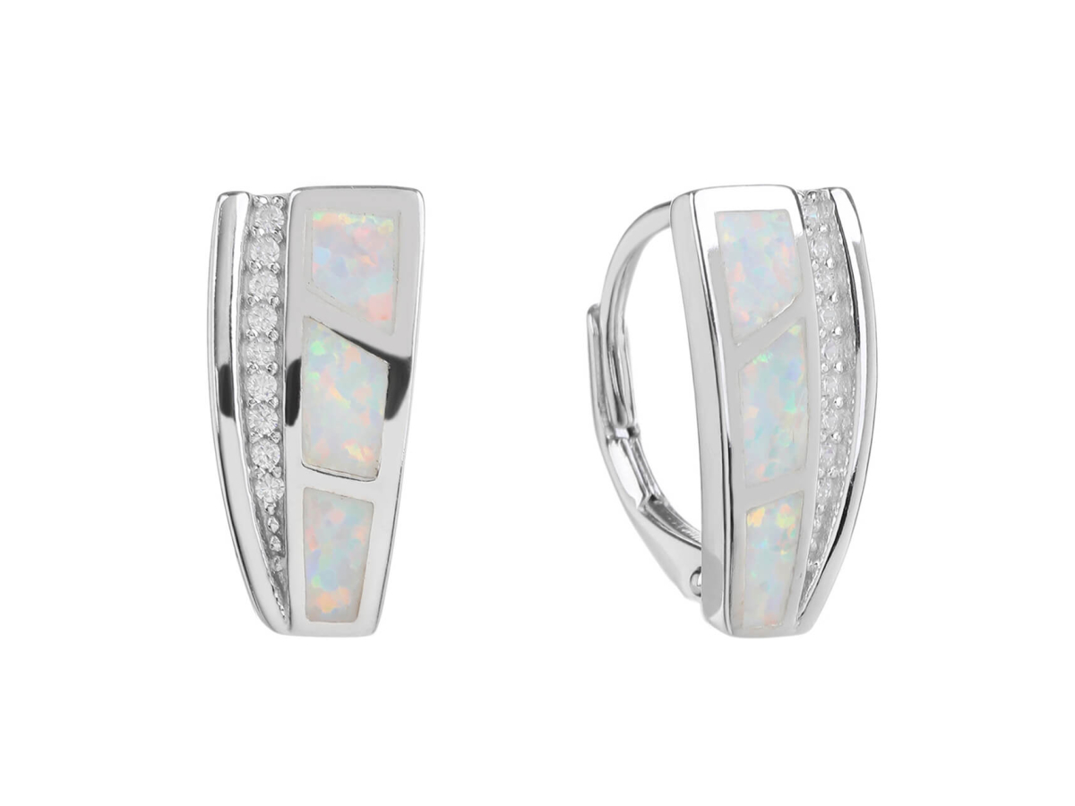 Stříbrné náušnice MOZAIKA bílý OPÁL Ag 925/1000