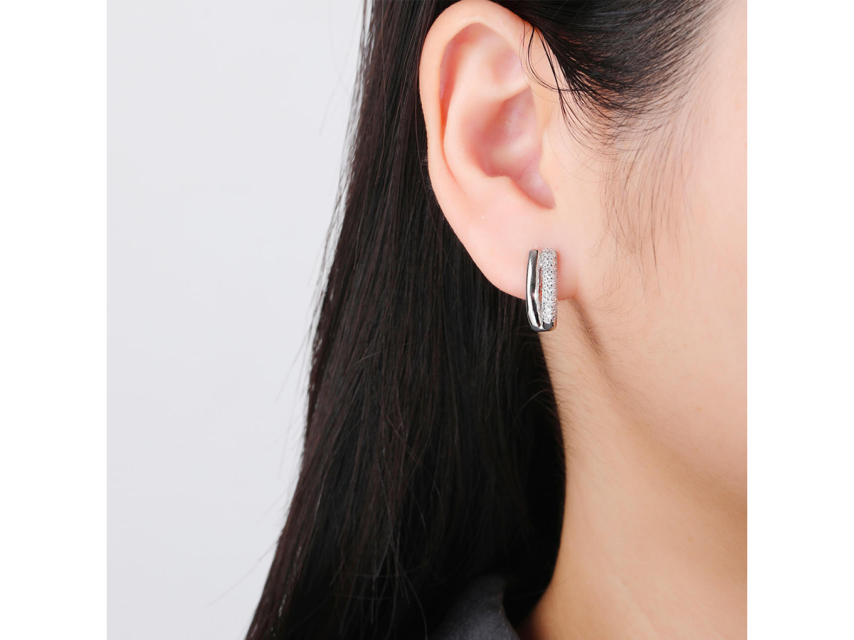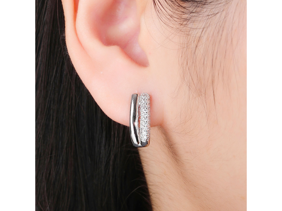 - Stříbrné náušnice s čirými zirkony, které se na světle třpytí díky svému jedinečnému brusu.