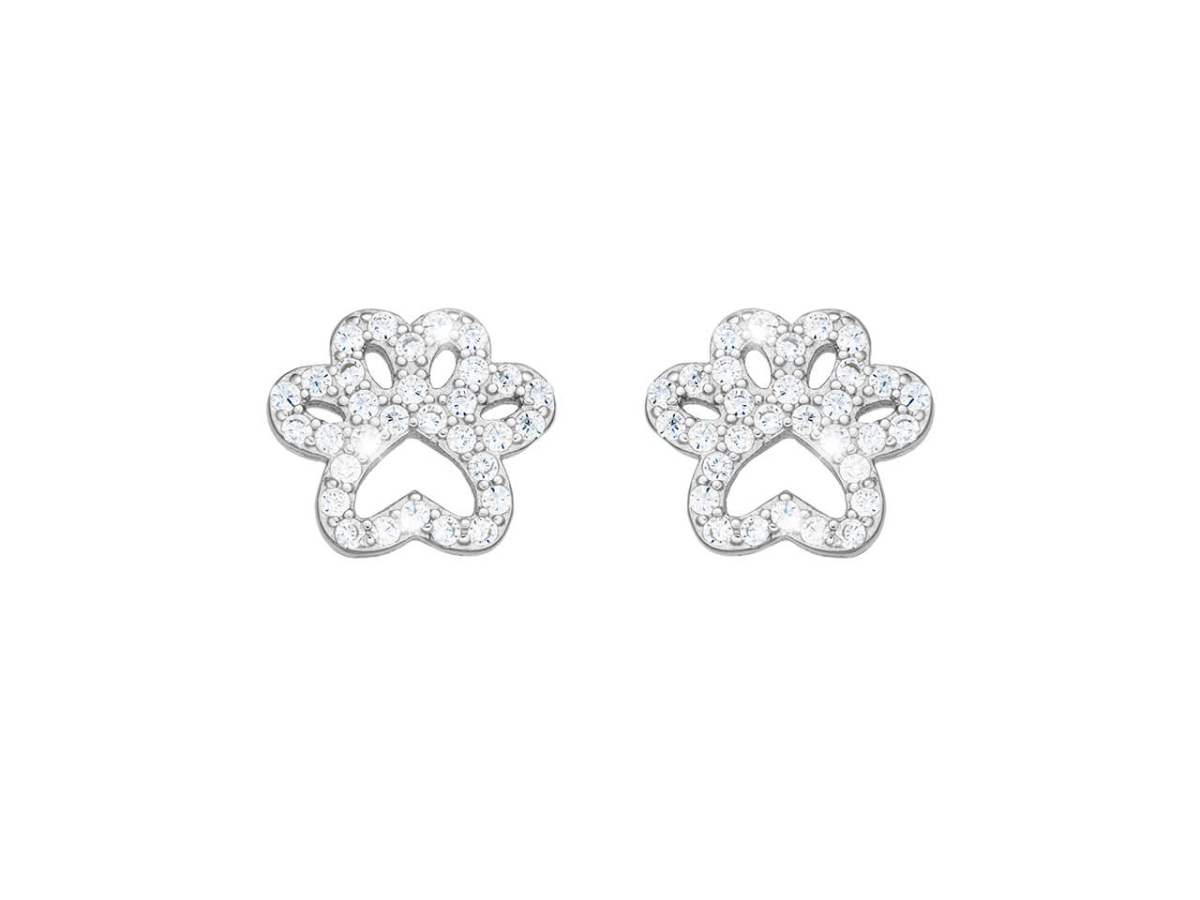 Stříbrné náušnice otisk nohy Třpyt kubických zirkonů nejvyšší AAA kvality Poctivé stříbro 925/1000 s puncem ryzosti Ochranná povrchová úprava rhodium Typ zapínání náušnice:...