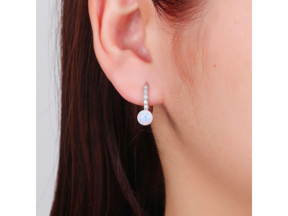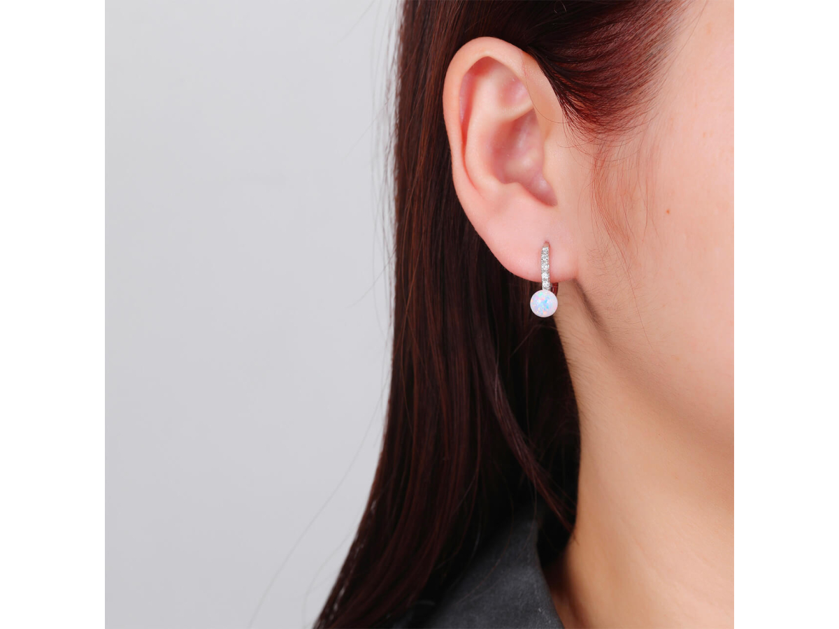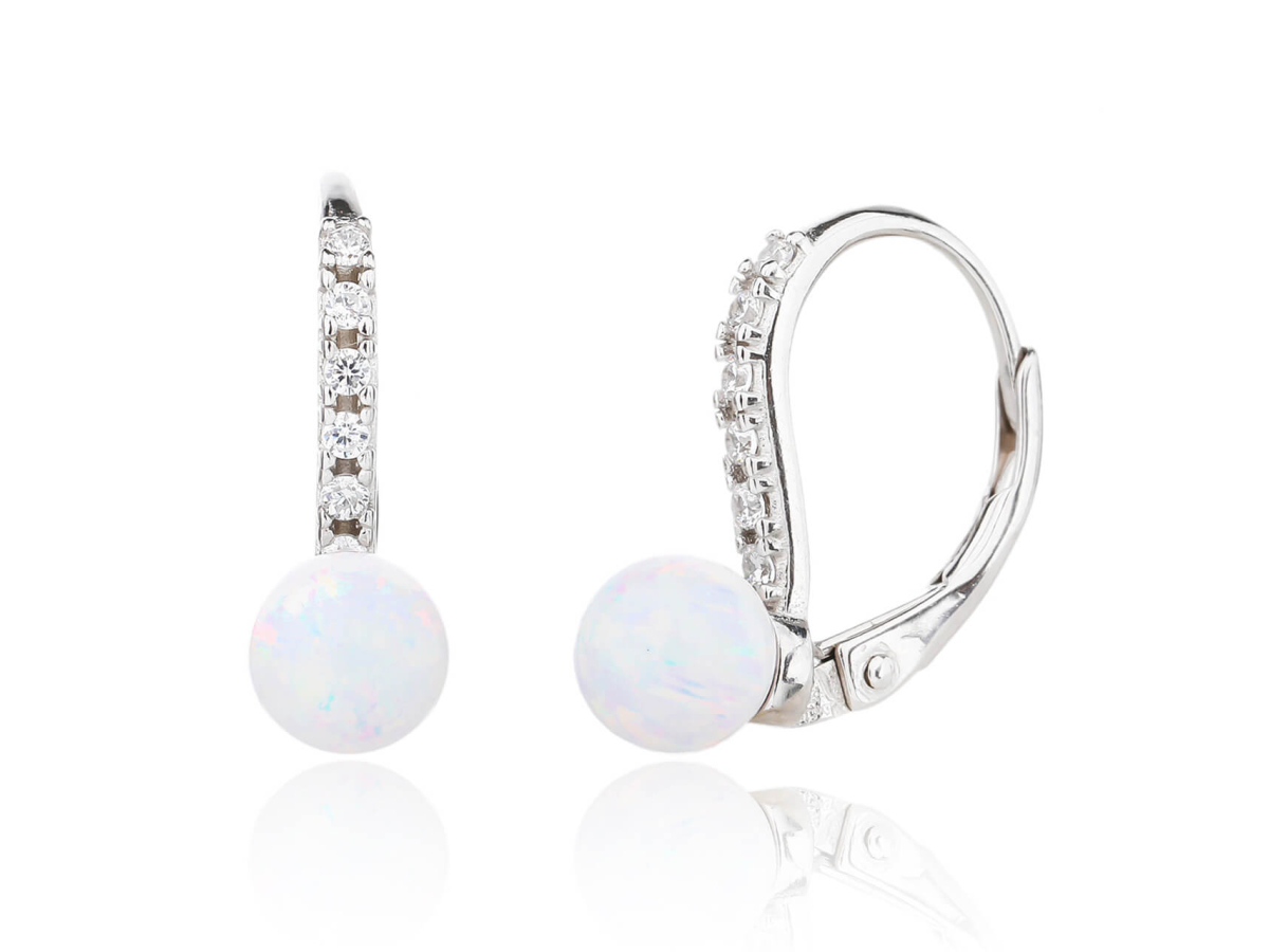 - Tyto stříbrné náušnice zdobí bílý opál, jehož opalizující hra barev působí jemně a přitom neodolatelně poutá pozornost.