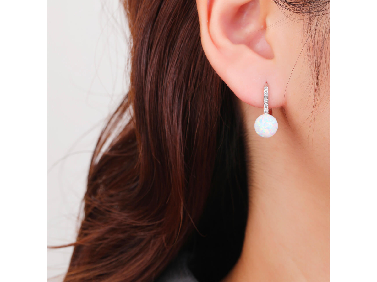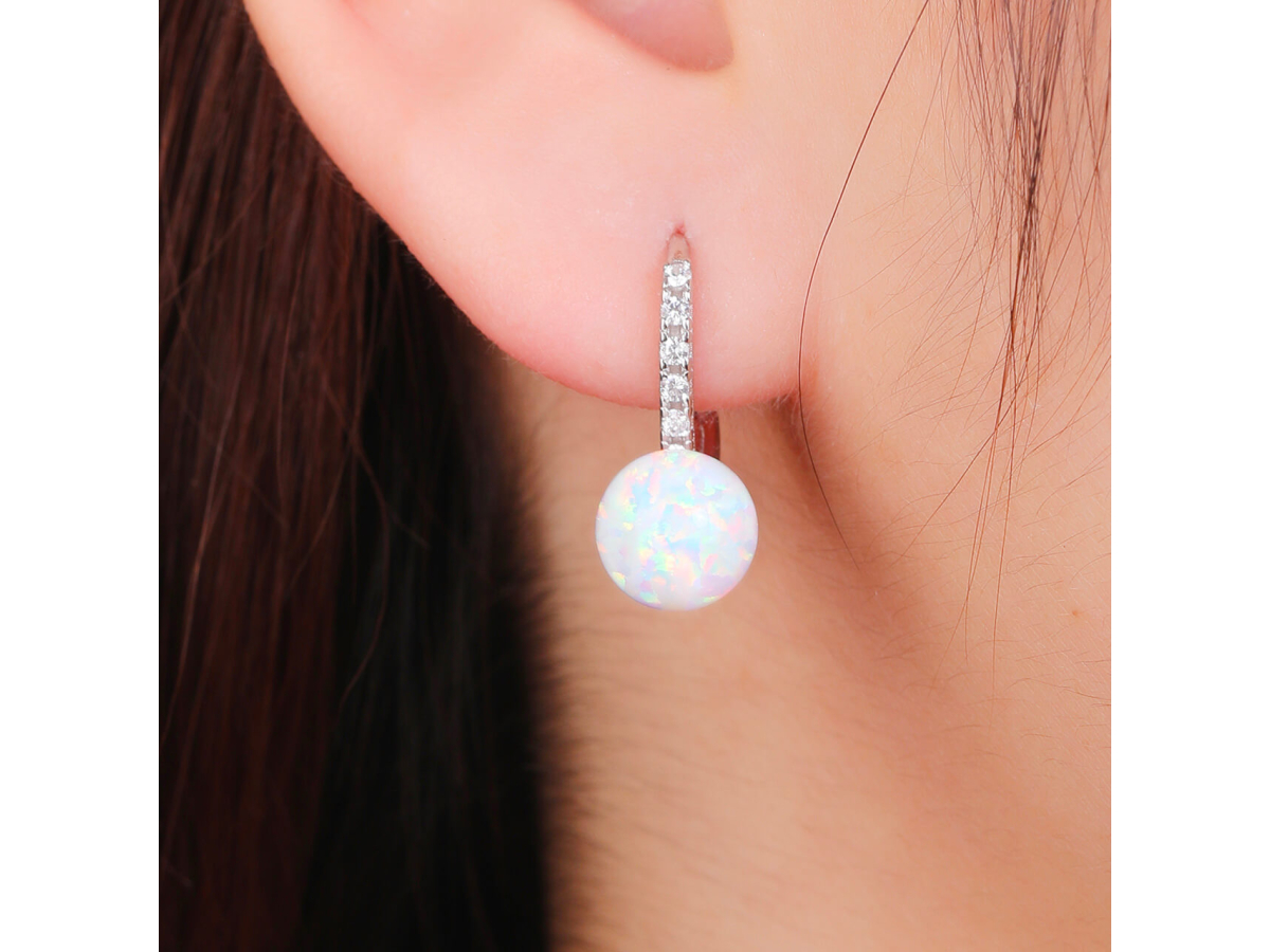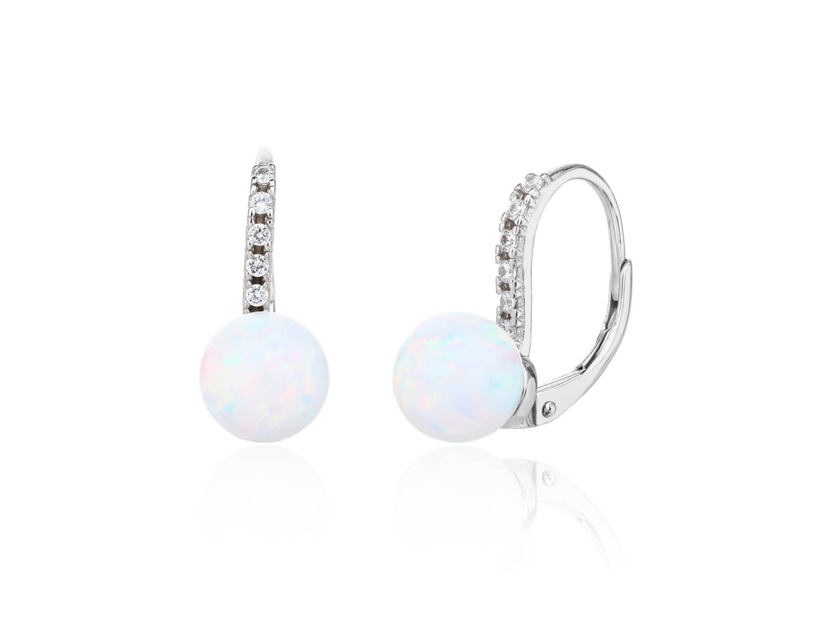- Tyto stříbrné náušnice zdobí bílý opál, jehož opalizující hra barev působí jemně a přitom neodolatelně poutá pozornost.