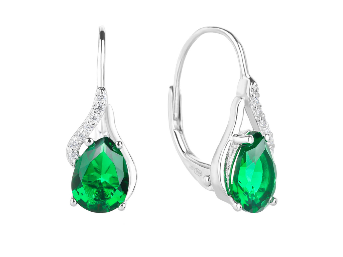 Stříbrné náušnice SLZA smaragdové Ag 925/1000