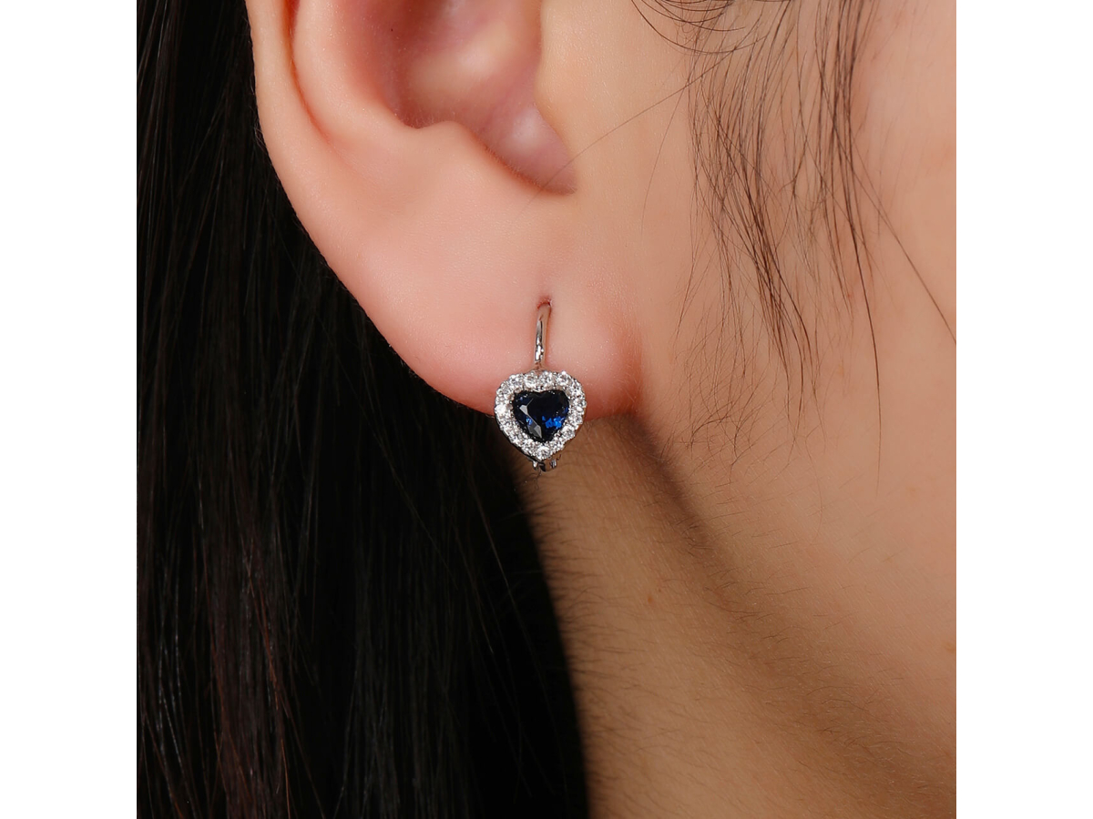 Stříbrné náušnice SRDCE modré Ag 925/1000