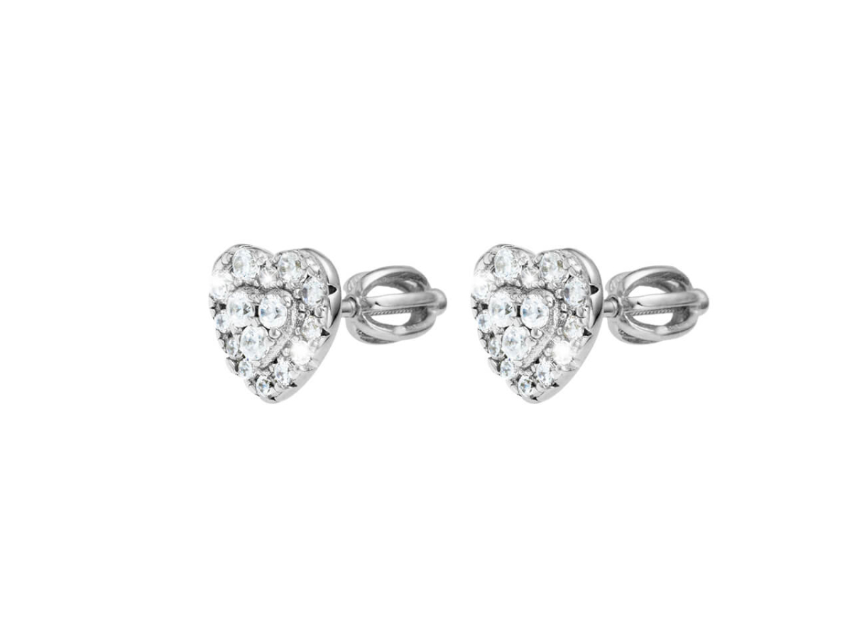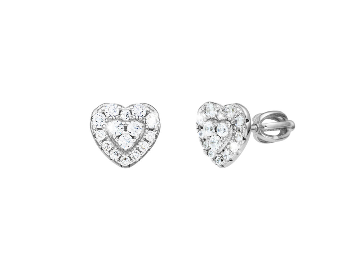 Stříbrné náušnice srdce Osazeny kubickými zirkony nejvyšší AAA kvality Poctivé stříbro 925/1000 s puncem ryzosti Ochranná povrchová úprava rhodium Typ zapínání...