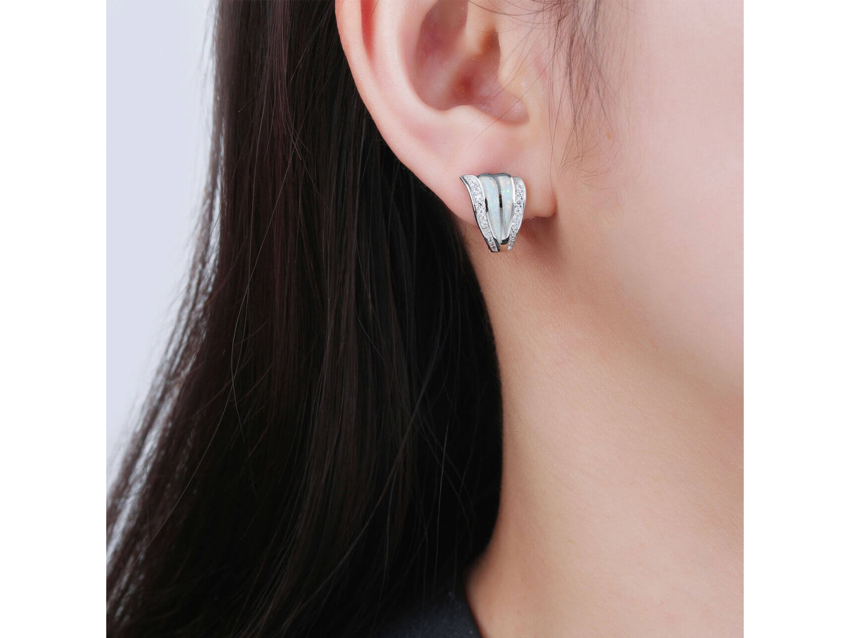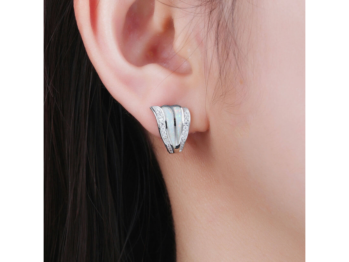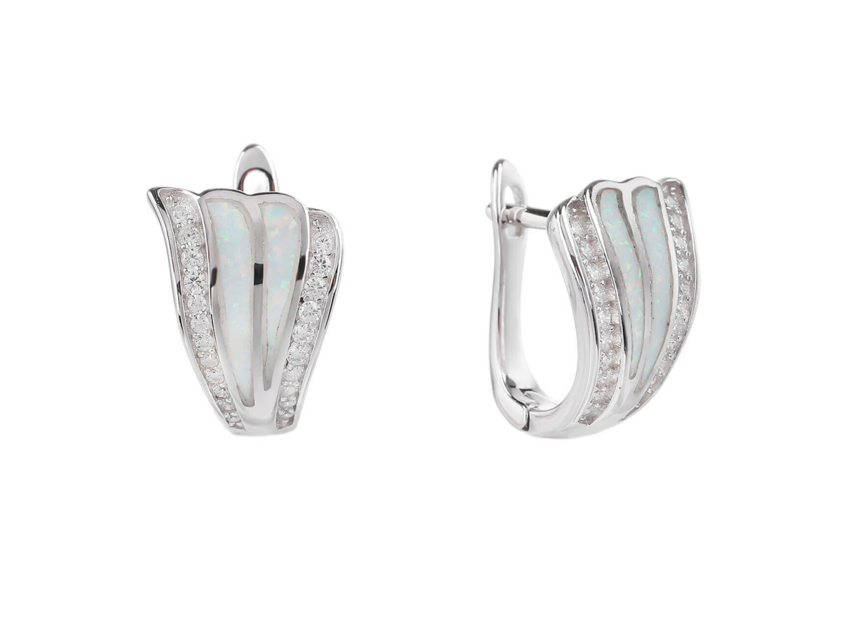 Stříbrné náušnice VĚJÍŘ bílý OPÁL Ag 925/1000