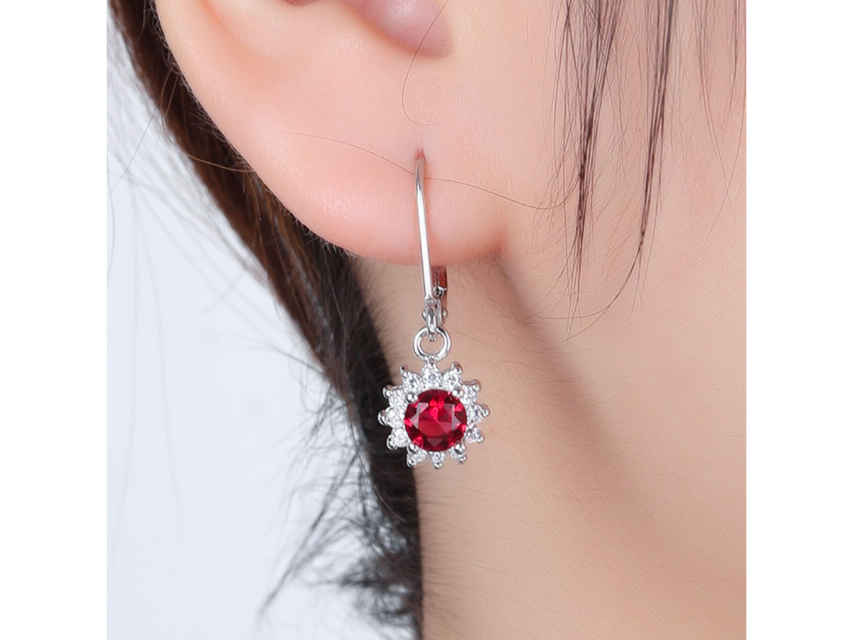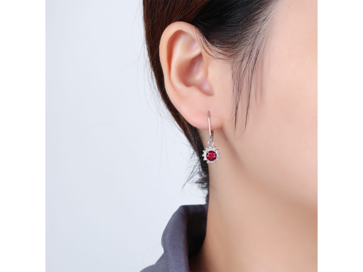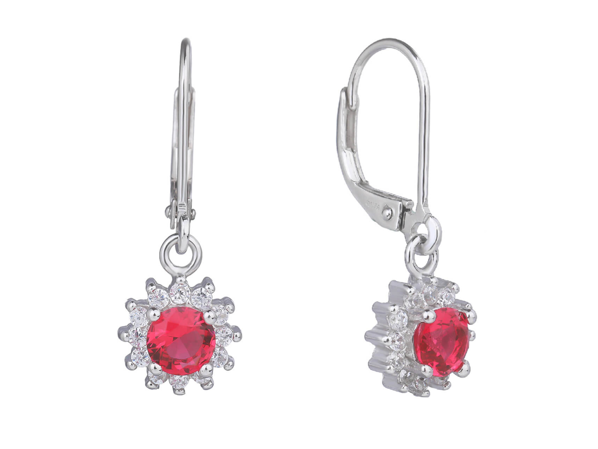 Stříbrné náušnice VISACÍ rubín Ag 925/1000