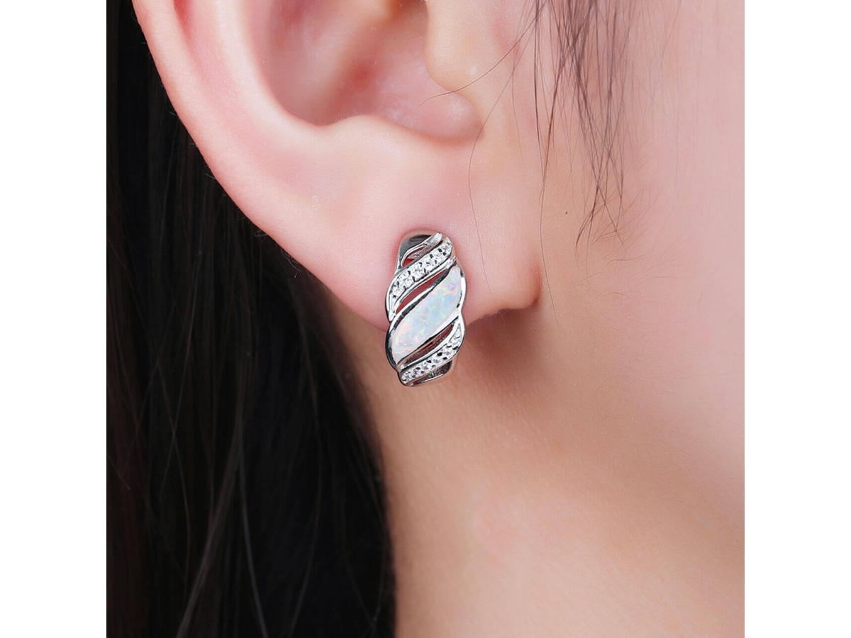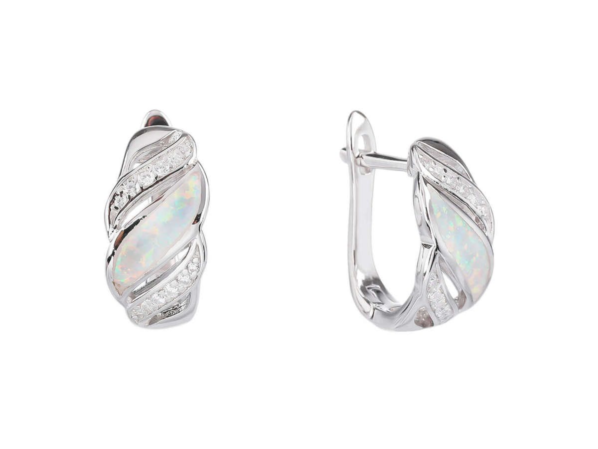 Stříbrné náušnice VLNKY bílý OPÁL Ag 925/1000