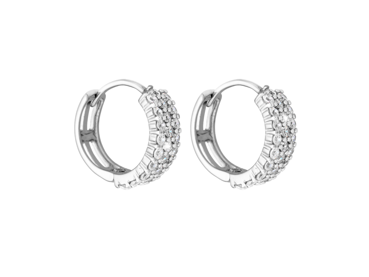 - Stříbrné náušnice ve tvaru jemných kroužků zdobené zářivými zirkony pro dokonalý lesk.