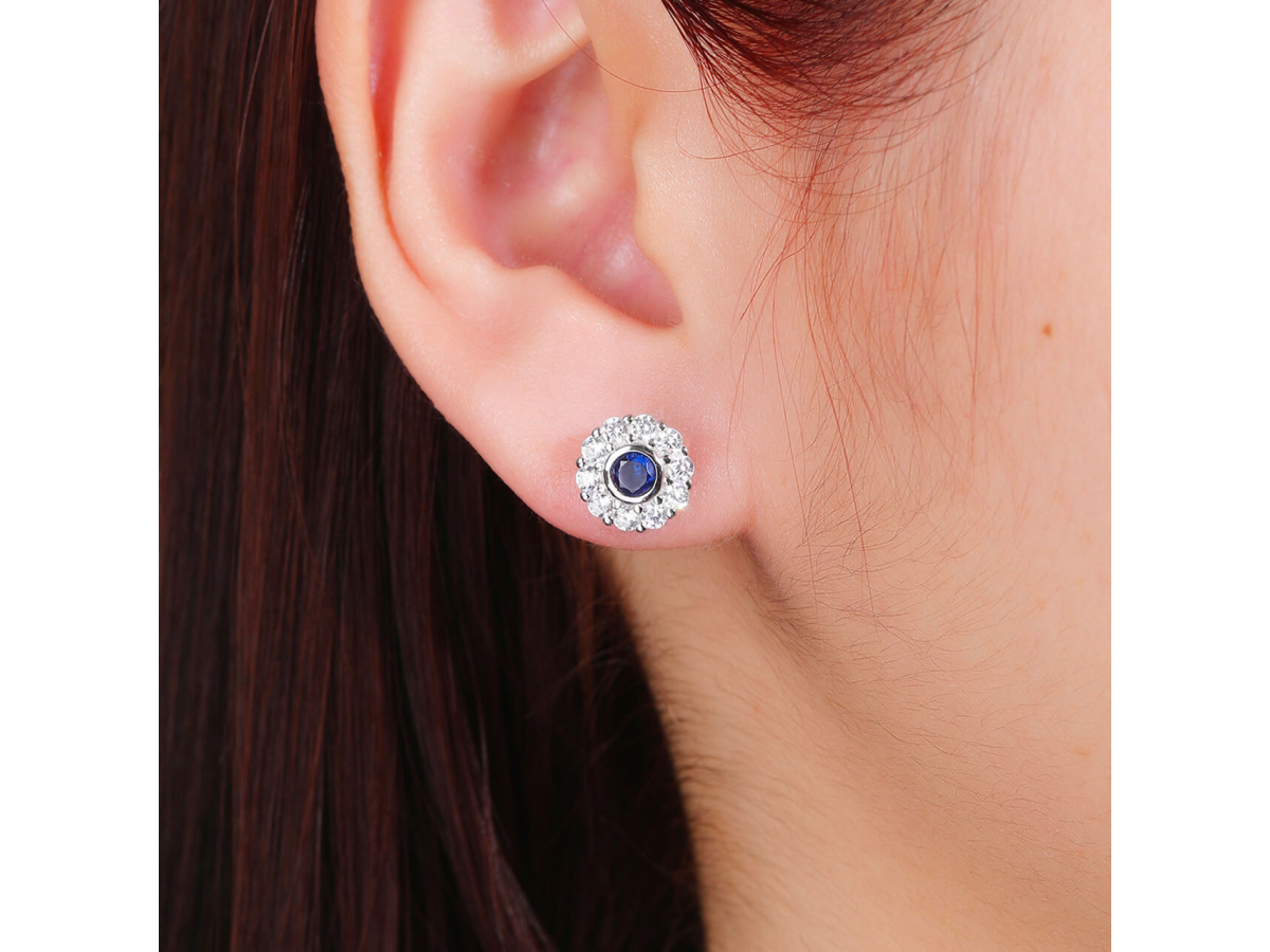 - Centrální kámen je zvýrazněn drobnými zirkony okolo, které násobí jeho třpyt a dodávají náušnicím luxusní vzhled.
