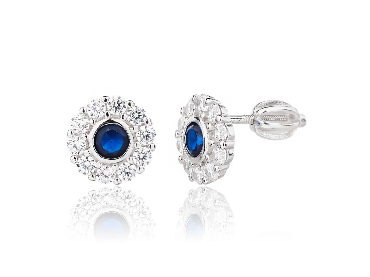 Stříbrné náušnice s motivem květu a modrým zirkonem Třpyt kubických zirkonů nejvyšší AAA kvality Poctivé stříbro 925/1000 s puncem ryzosti Ochranná povrchová úprava Rhodiem...