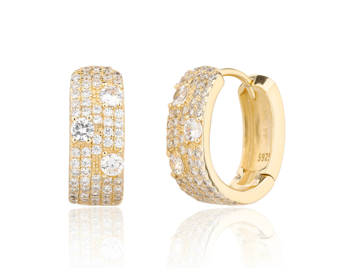 Stříbrné náušnice ve tvaru jemných kroužků zdobené zářivými zirkony pro dokonalý lesk. Elegantní zapínání na francouzský patent zajistí pohodlí a bezpečí při každodenním...