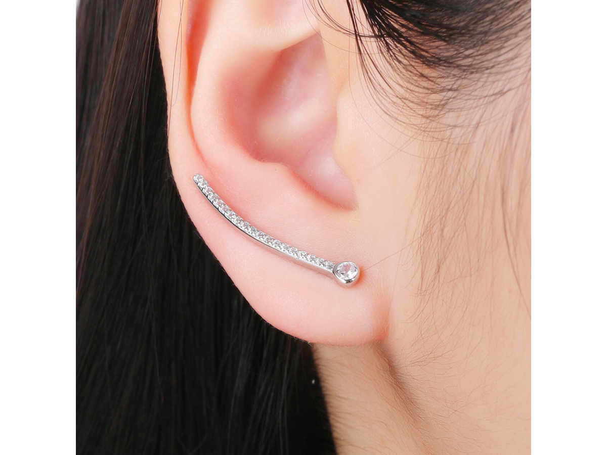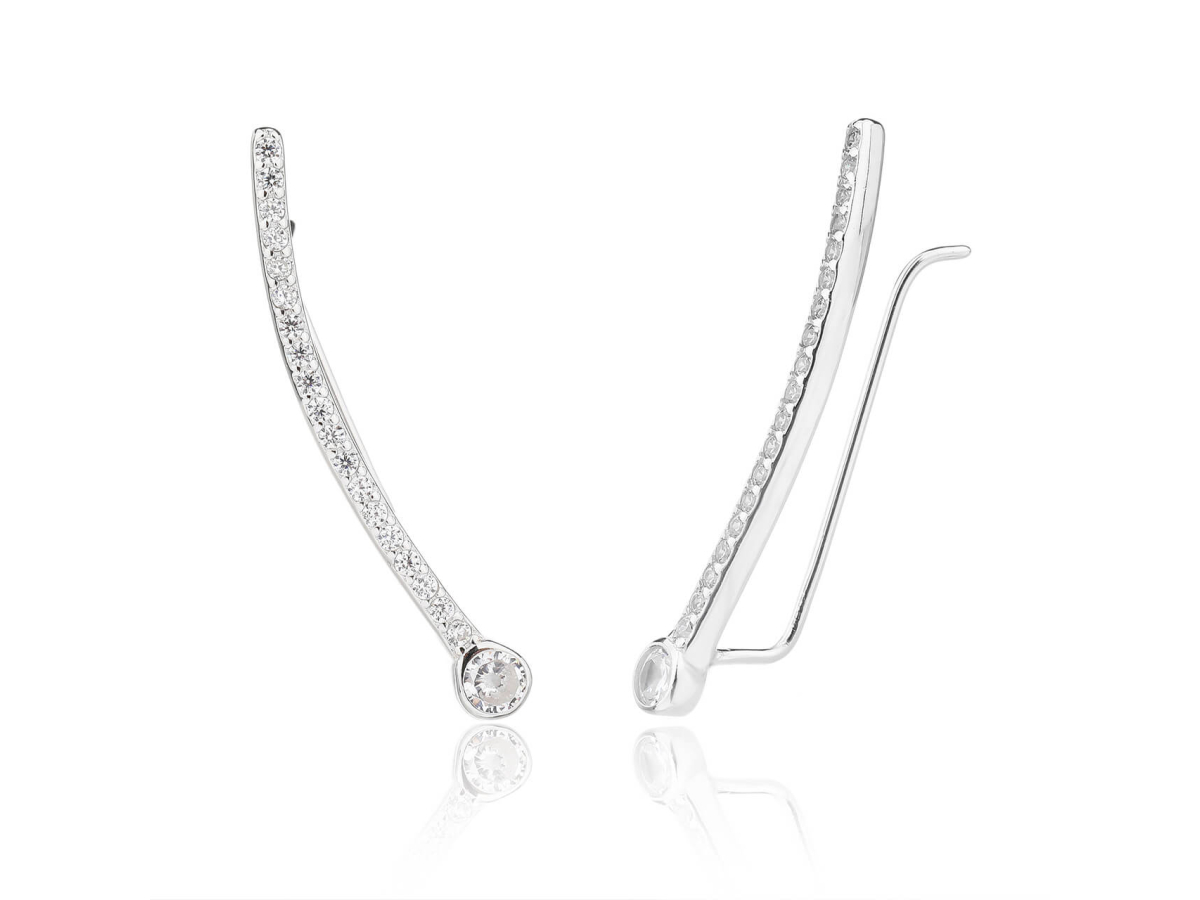 - Náušnice ve tvaru jemného půlměsíce jsou zdobené zářivými čirými zirkony, které zachytí každé světlo a přidají lesk vašemu vzhledu.