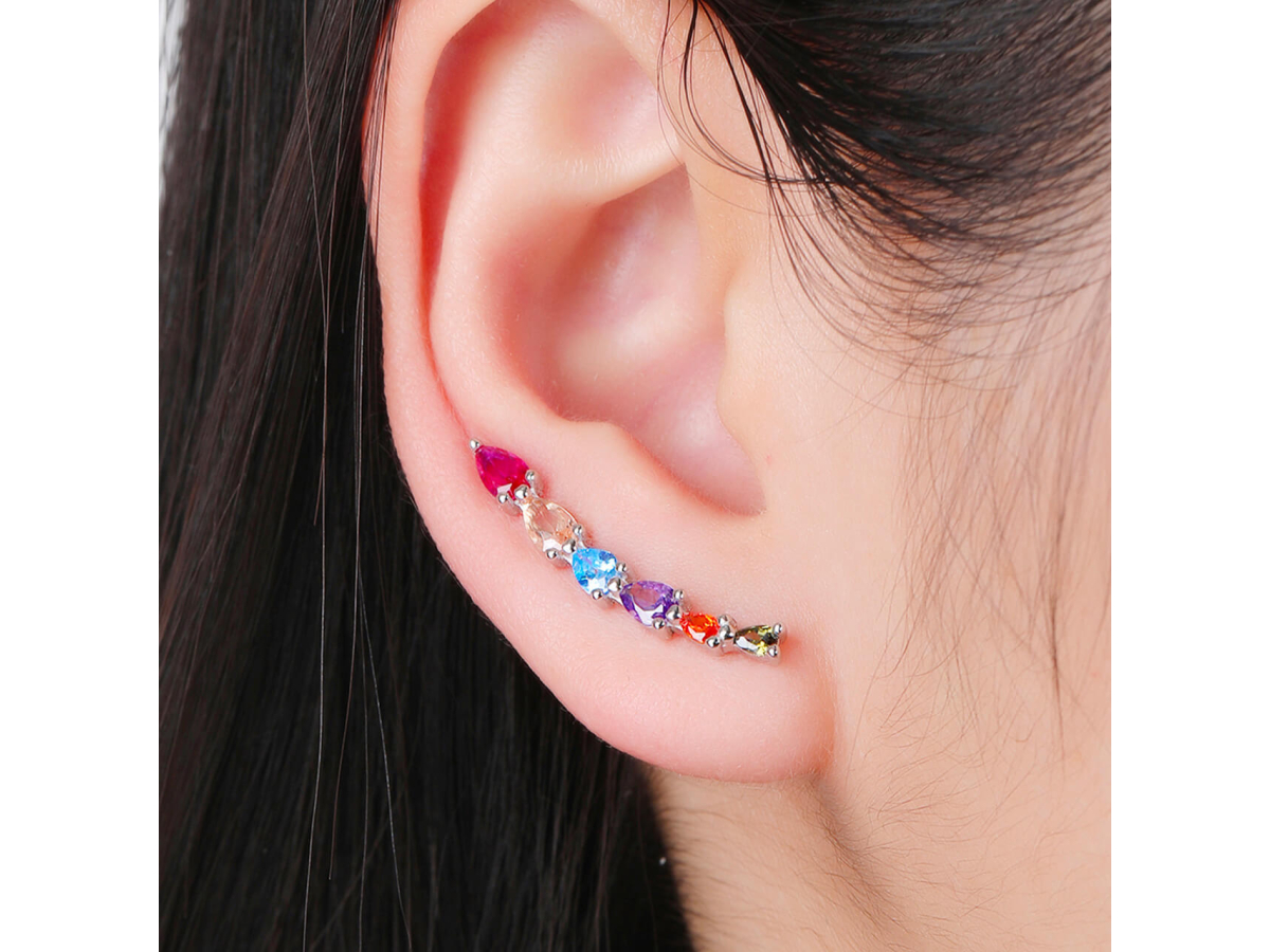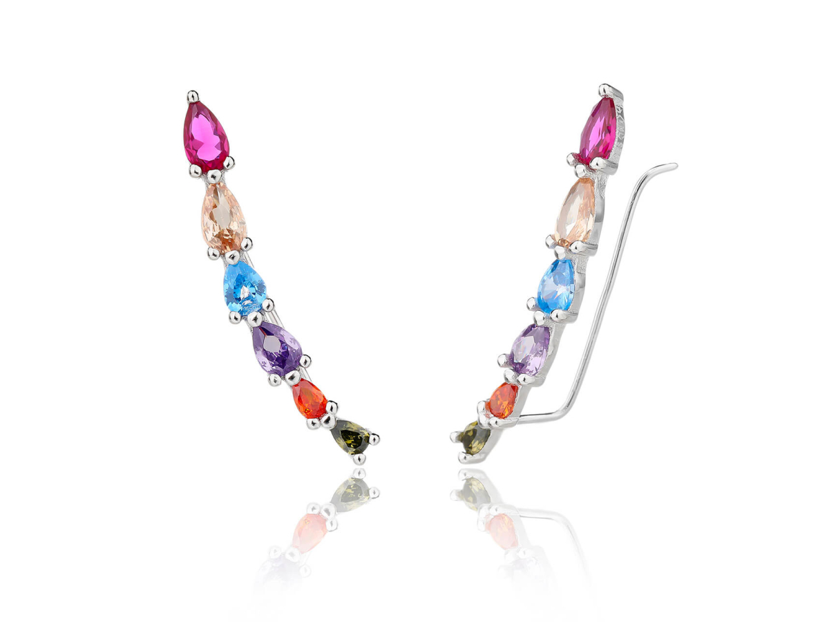 - Náušnice ve tvaru jemného půlměsíce jsou zdobené hravými barevnými zirkony, které zachytí každé světlo a přidají lesk vašemu vzhledu.
